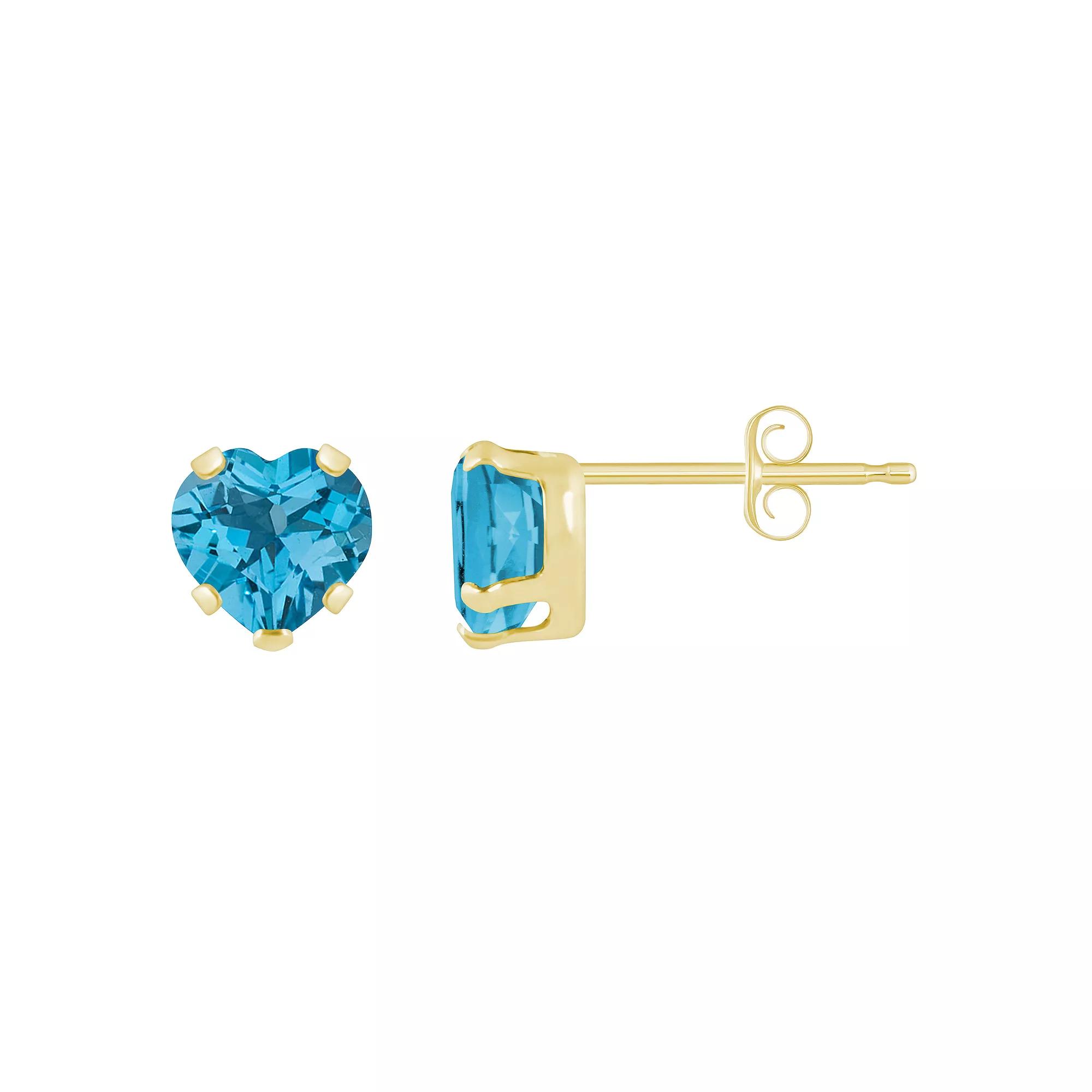 Celebration Gems 10k Gold 5 mm Heart Shape Gemstone Stud Earrings, Women's, Blue Topaz Product Image