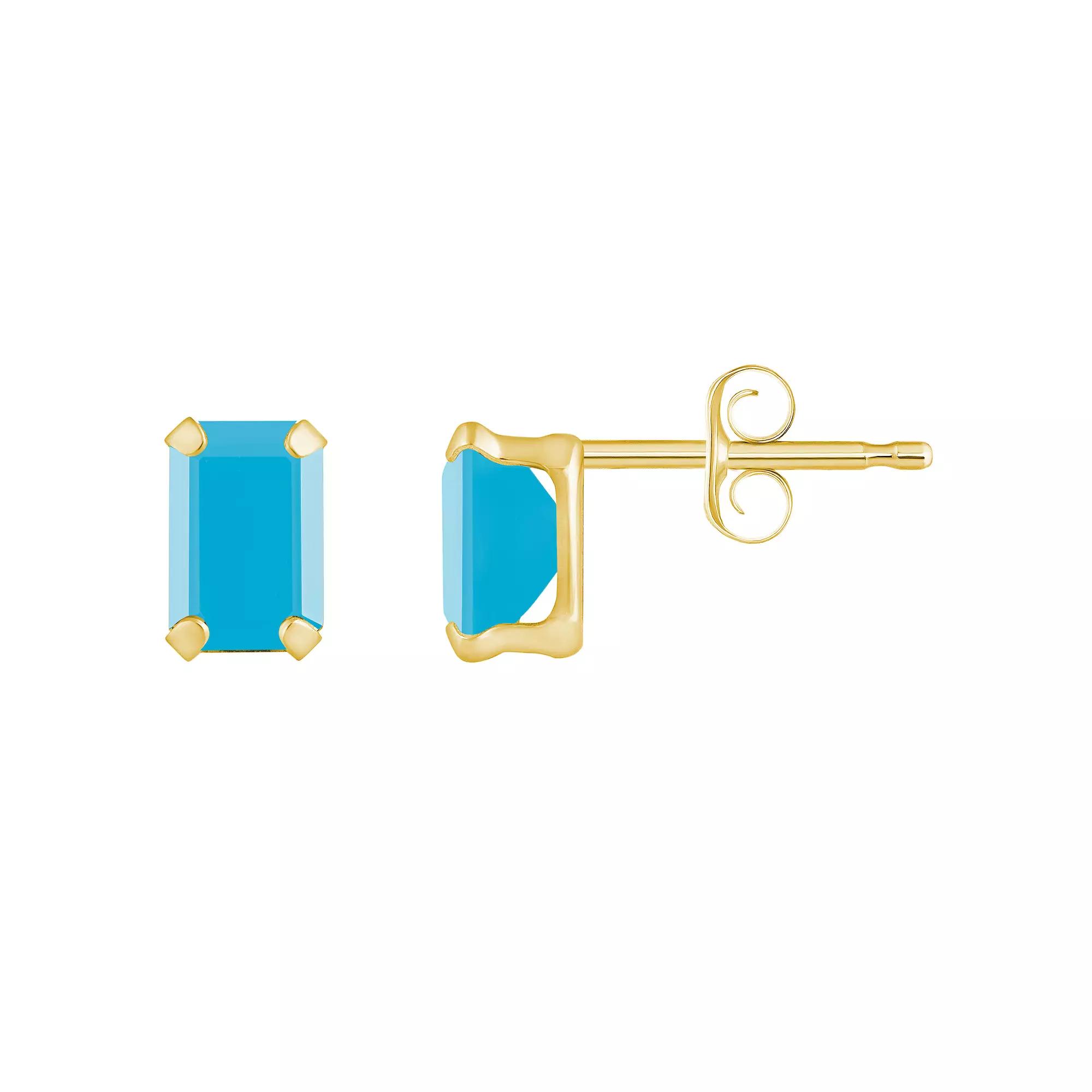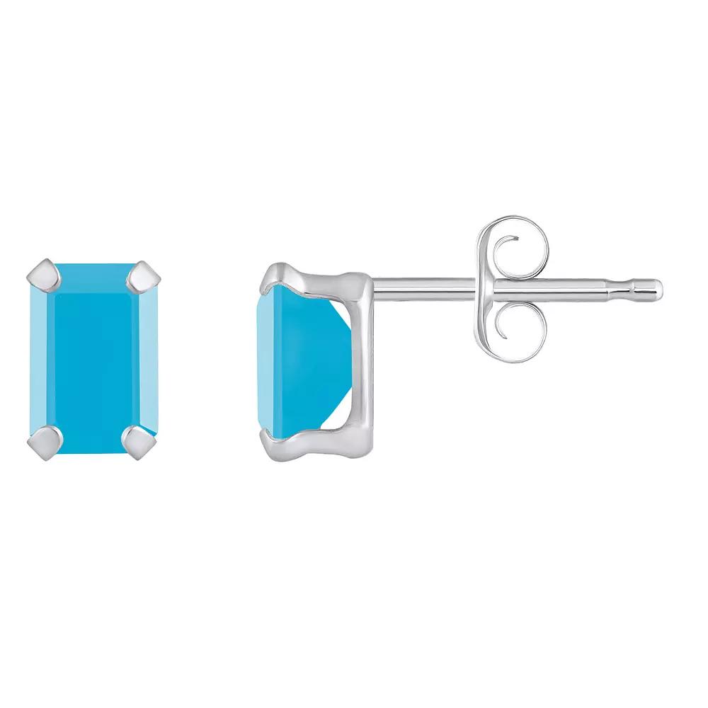 Complete your look in an eye-catching way with these emerald-cut stabilized turquoise stud earrings. Complete your look in an eye-catching way with these emerald-cut stabilized turquoise stud earrings. Length: 1/4 in. Backings: post Nickel free Metal: 10k white gold, 10k gold Finish: polished Packaging: boxed Plating: rhodiumSTONE DETAILS Stone type: stabilized turquoise Total weight: 3/4 ct. Center stone size: 6 mm x 4 mm Shape: emerald cut Setting: prong Gemstones may have been treated to enhance their appearance. Special care may be required. Please visit our Gemstone Treatment & Special Care Guide for more information. Please note, due to the high value of this item, a signature may be required upon delivery. Color: Blue. Gender: female. Age Group: adult.