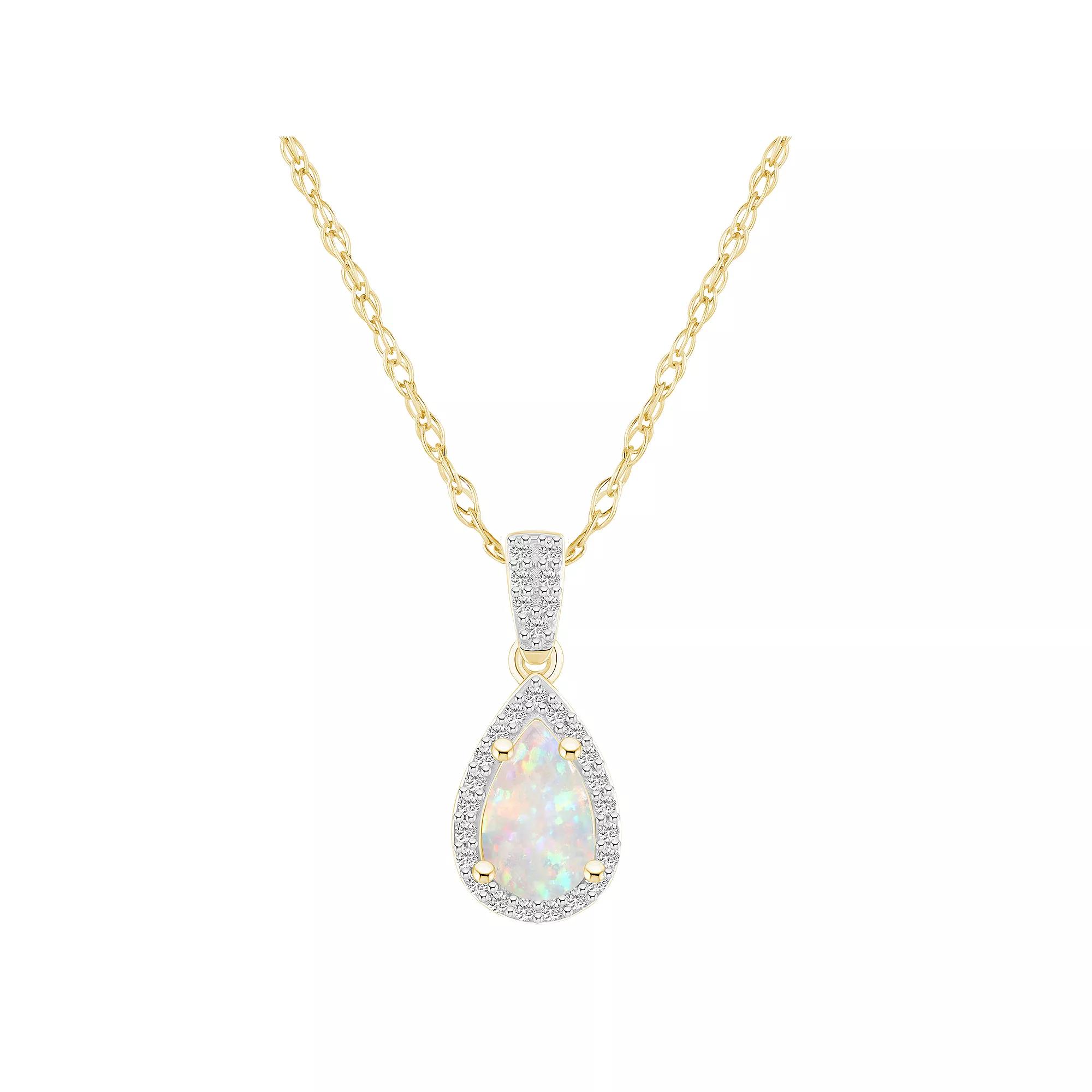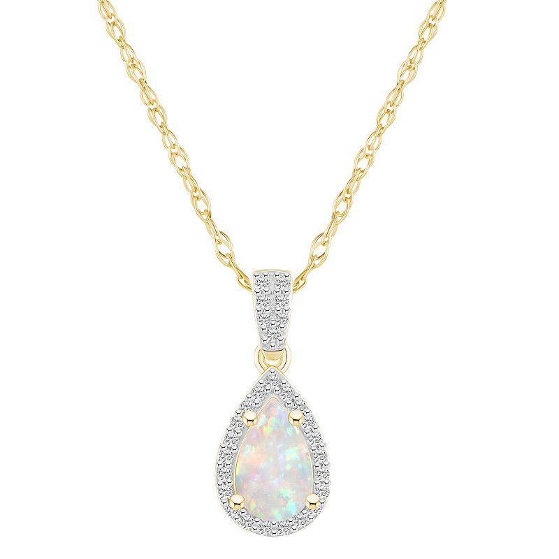 Crafted from 10k gold, this gemstone and lab-created white sapphire halo pendant lends a touch of elegance to your favorite outfits. Crafted from 10k gold, this gemstone and lab-created white sapphire halo pendant lends a touch of elegance to your favorite outfits. Pendant size: 2/3L x 1/3W Chain length: 18 in. Chain type: rope Nickel free Metal: 10k gold Finish: polished Packaging: boxedSTONE DETAILS Center stone size: 8 mm x 5 mm Shape: pear, round Setting: prong Gemstones may have been treated to enhance their appearance. Special care may be required. Please visit our Gemstone Treatment & Special Care Guide for more information. Please note, due to the high value of this item, a signature may be required upon delivery. Size: 18. Gender: female. Age Group: adult.
