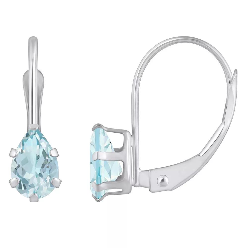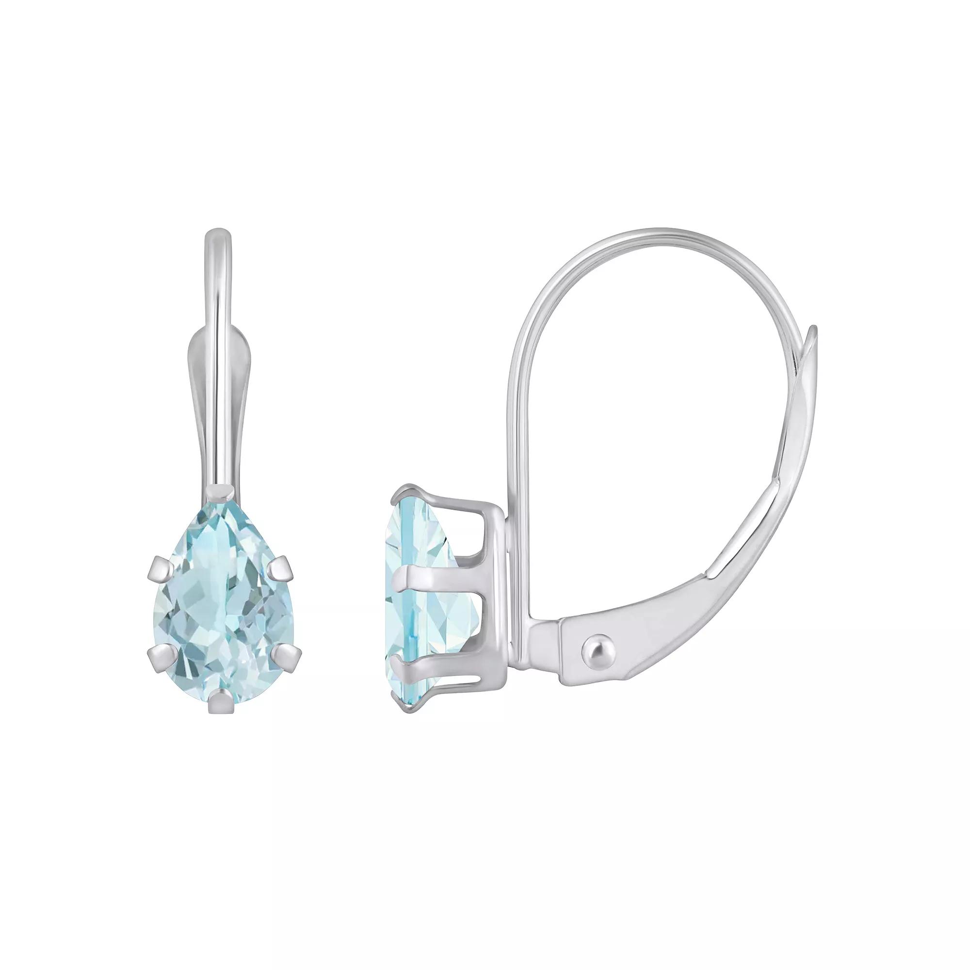 Featuring pear-shaped aquamarine gemstones, these 10k gold leverback earrings lend a touch of color to your look. Featuring pear-shaped aquamarine gemstones, these 10k gold leverback earrings lend a touch of color to your look. Length: 1/2 in....
