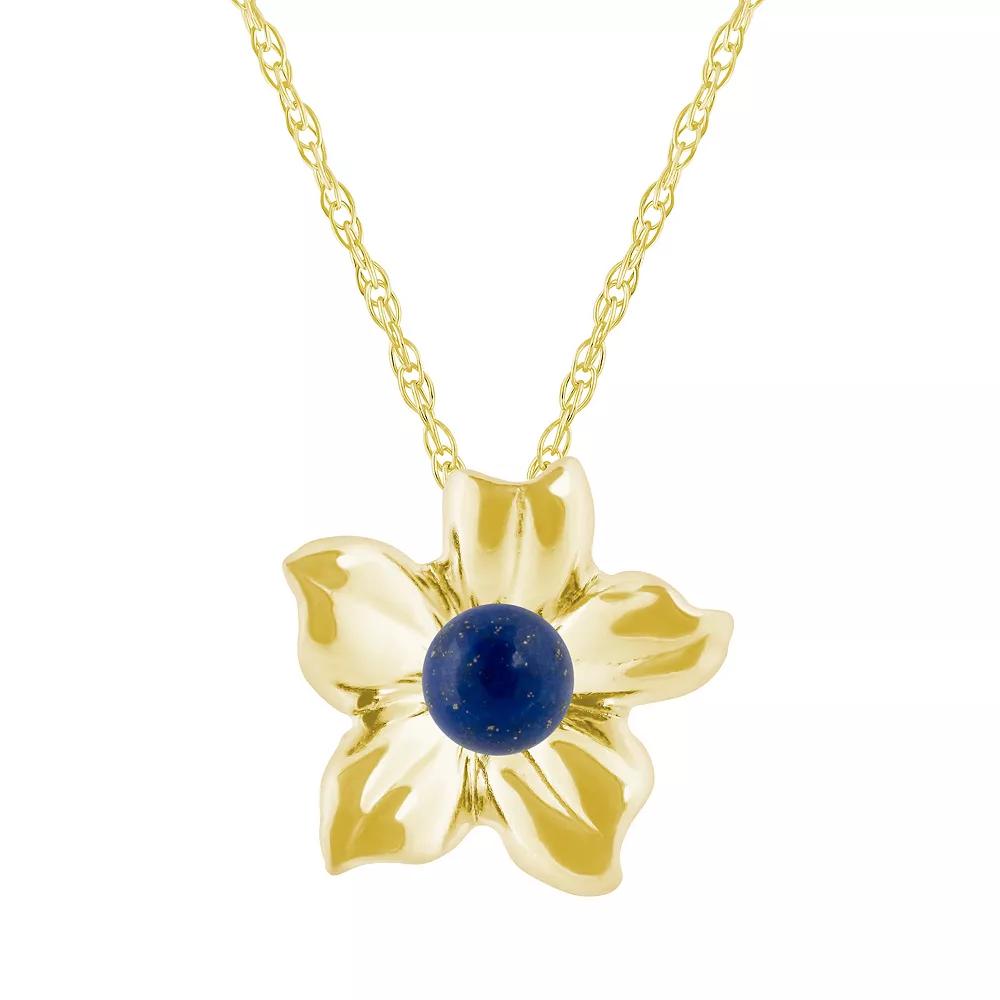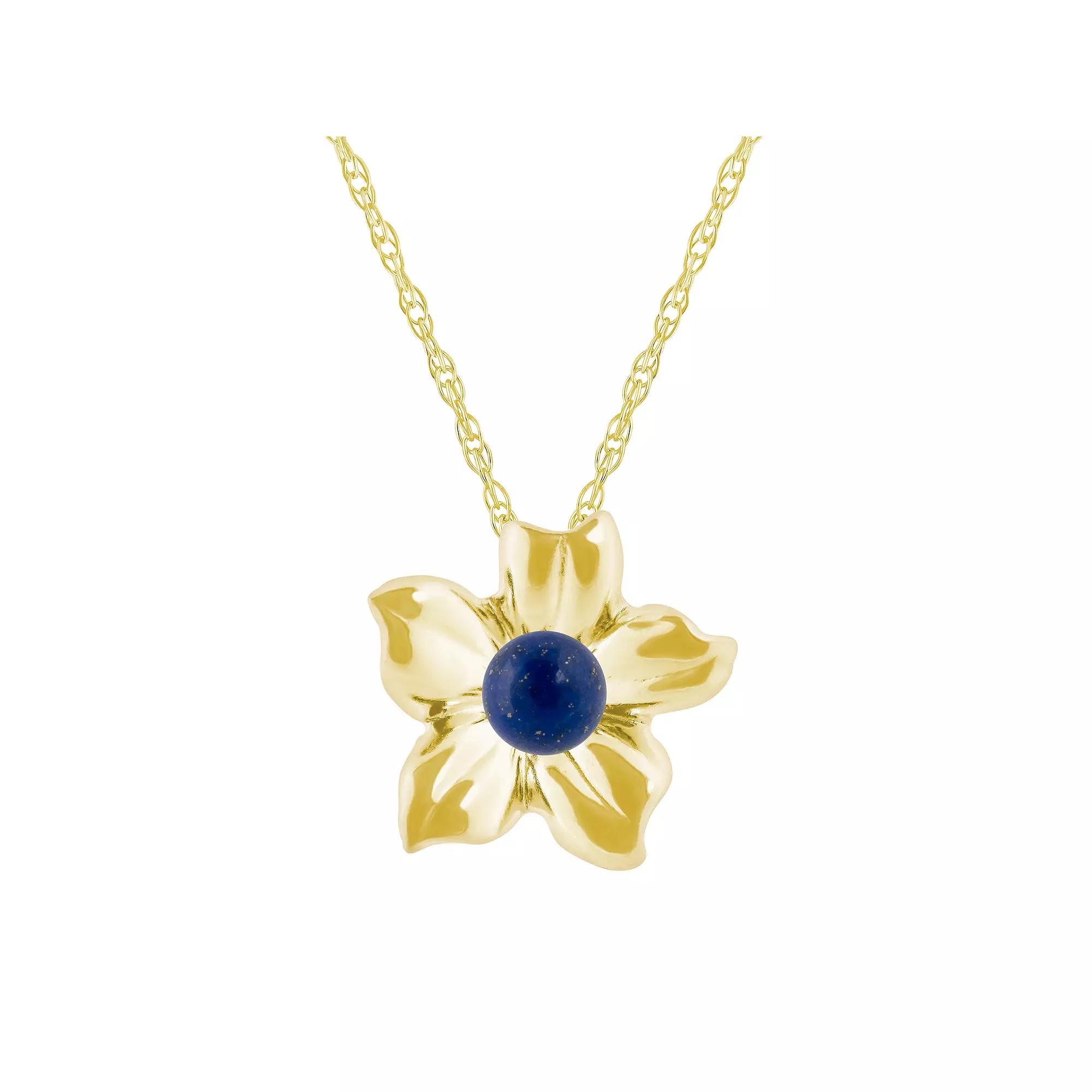 Celebration Gems 10k Gold Sphere Gemstone Hibiscus Flower Pendant Necklace, Women's, Size: 18", Lapis Product Image