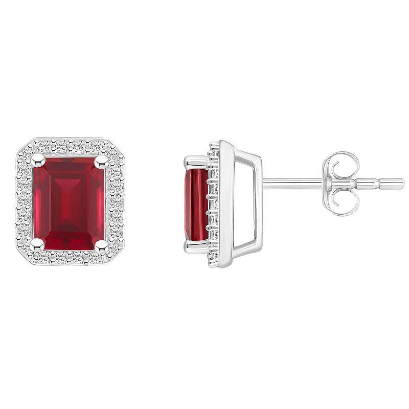 Crafted from 10k white gold, these gemstone and lab-created white sapphire halo earrings lend a touch of elegance to your favorite outfits. Crafted from 10k white gold, these gemstone and lab-created white sapphire halo earrings lend a touch of elegance to your favorite outfits. Length: 2/5 in. Backings: post Metal: 10k white gold Plating: rhodium Finish: polished Packaging: boxedSTONE DETAILS Center stone size: 7 mm x 5 mm Shape: emerald cut, round Setting: prong Gemstones may have been treated to enhance their appearance. Special care may be required. Please visit our Gemstone Treatment & Special Care Guide for more information. Please note, due to the high value of this item, a signature may be required upon delivery. Gender: female. Age Group: adult.