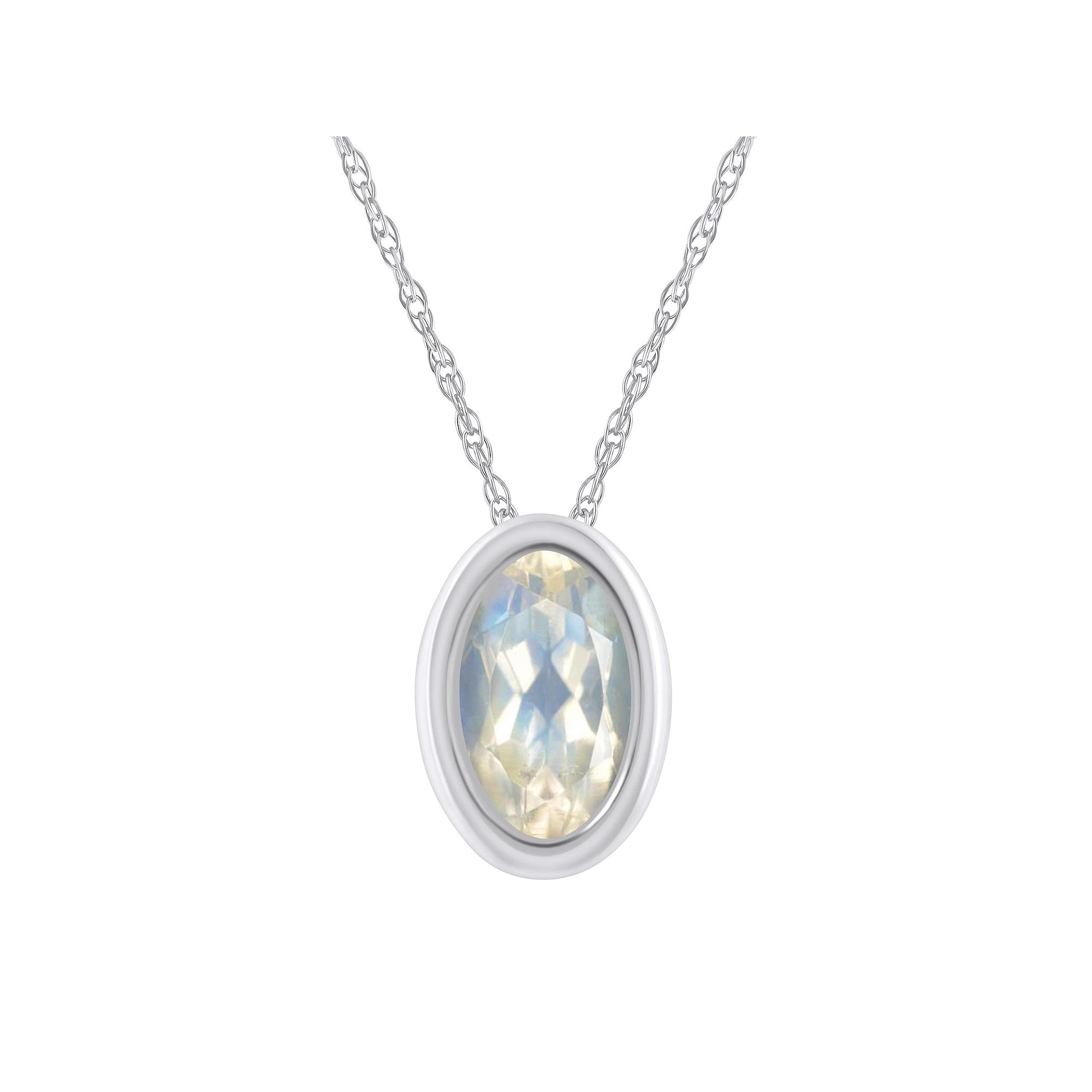 Youll love the beautiful style of this Celebration Gems 10k White Gold Oval Gemstone Pendant Necklace. Click on this JEWELRY & WATCHES GUIDE to learn about fit, styles, materials and more! Youll love the beautiful style of this Celebration Gems 10k White Gold Oval Gemstone Pendant Necklace. Click on this JEWELRY & WATCHES GUIDE to learn about fit, styles, materials and more! FEATURES Pendant dimensions: 1/4 in. x 1/5 in. Chain length: 18 in. Chain type: rope Clasp: spring-ring Metal: 10k white gold Plating: rhodium Finish: polished Packaging: boxedSTONE DETAILS Stone type: moonstone, tanzanite, onyx, white topaz Stone size: 6 mm x 4 mm Shape: oval Setting: bezel Gemstones may have been treated to enhance their appearance. Special care may be required. Please visit our Gemstone Treatment & Special Care Guide for more information. Size: 18. Gender: female. Age Group: adult.