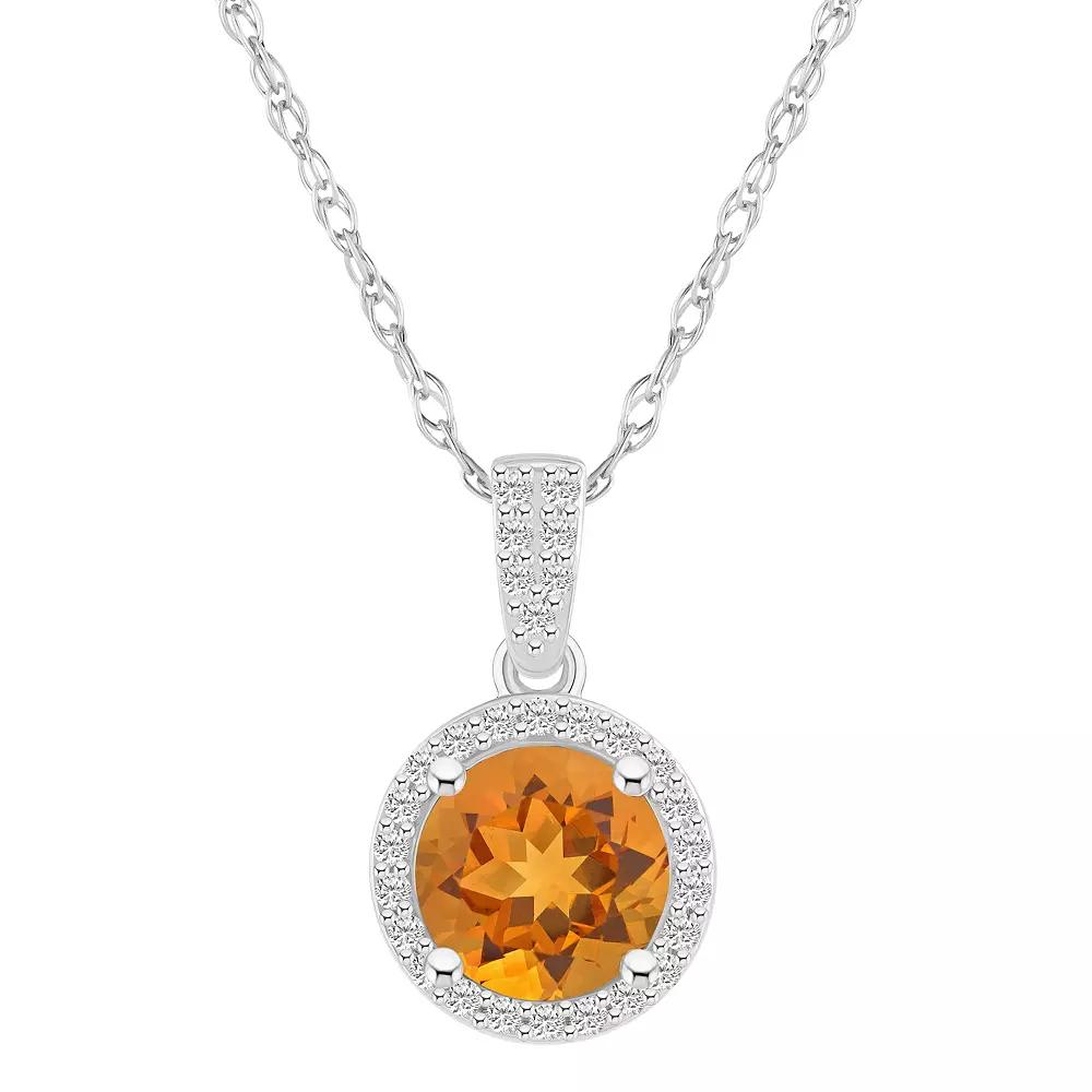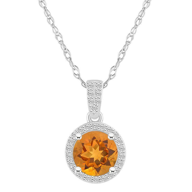 Crafted from 10k white gold, this gemstone and lab-created white sapphire halo pendant lends a touch of elegance to your favorite outfits. Crafted from 10k white gold, this gemstone and lab-created white sapphire halo pendant lends a touch of elegance to your favorite outfits. Pendant size: 2/3L x 3/8W Chain length: 18 in. Chain type: rope Metal: 10k white gold Plating: rhodium Finish: polished Packaging: boxedSTONE DETAILS Center stone size: 7 mm Shape: round Setting: prong Gemstones may have been treated to enhance their appearance. Special care may be required. Please visit our Gemstone Treatment & Special Care Guide for more information. Please note, due to the high value of this item, a signature may be required upon delivery. Size: 18. Color: Orange. Gender: female. Age Group: adult.