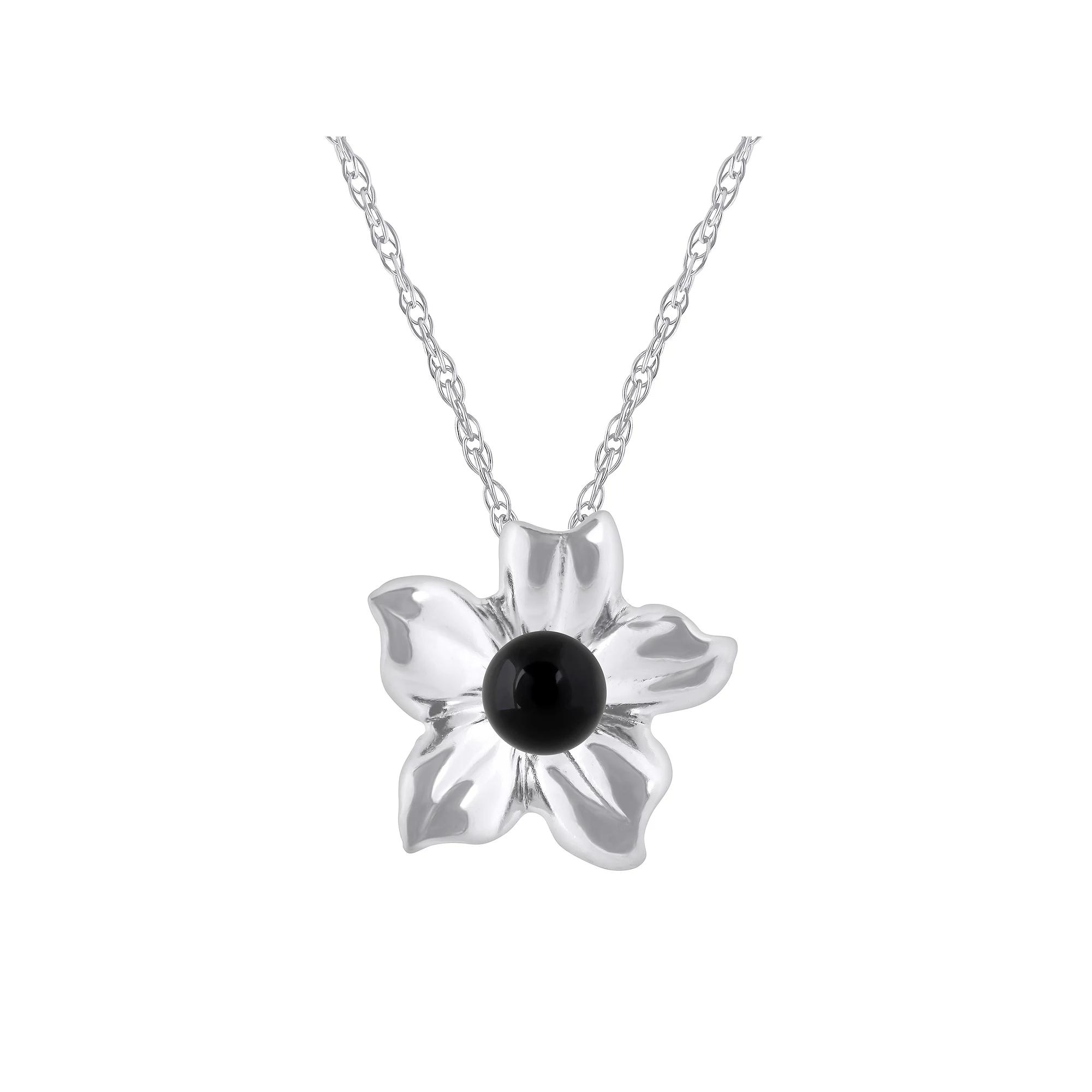 Celebration Gems 10k White Gold Sphere Gemstone Hibiscus Flower Pendant Necklace, Women's, Size: 18", Black Product Image