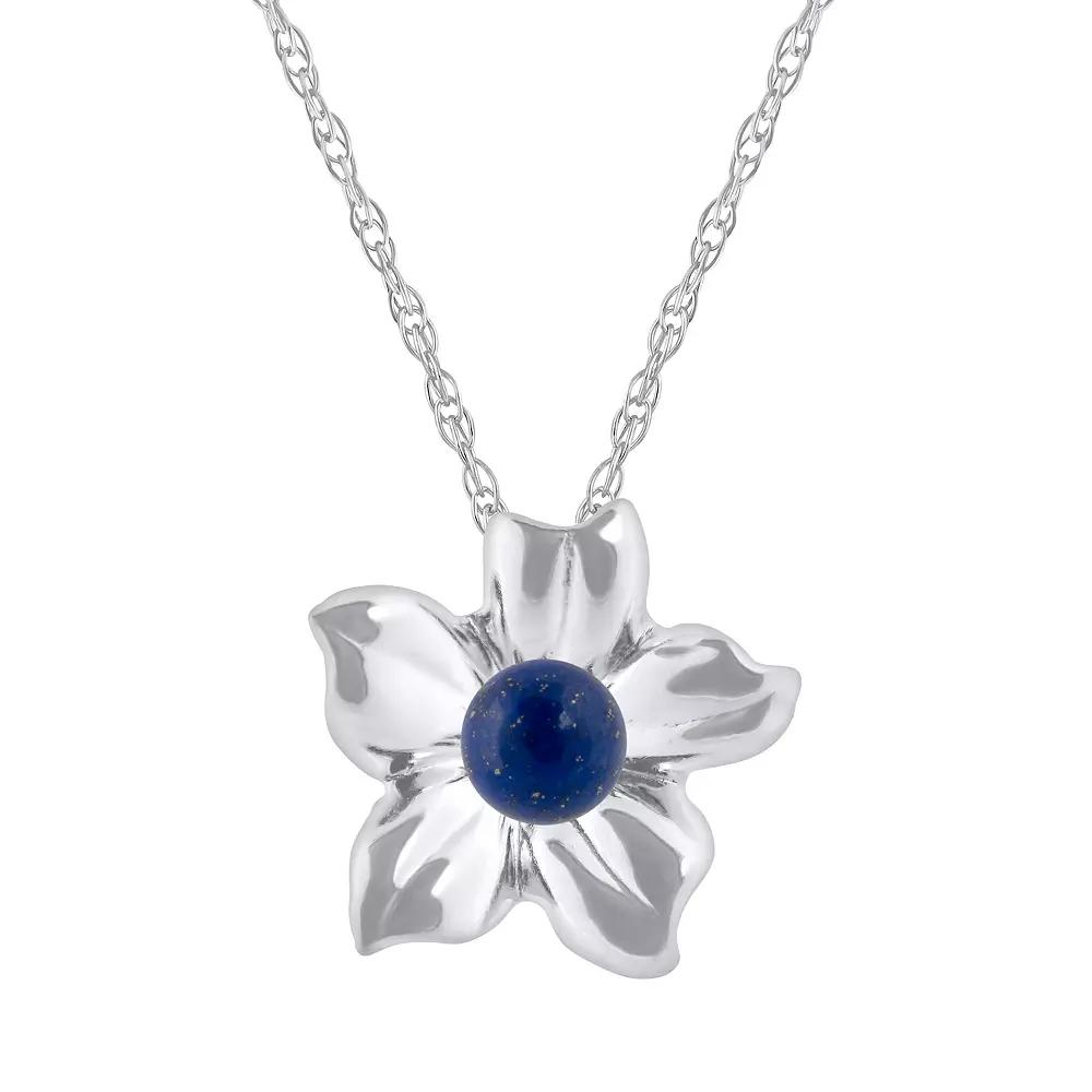 Celebration Gems 10k White Gold Sphere Gemstone Hibiscus Flower Pendant Necklace, Women's, Size: 18", Lapis Product Image