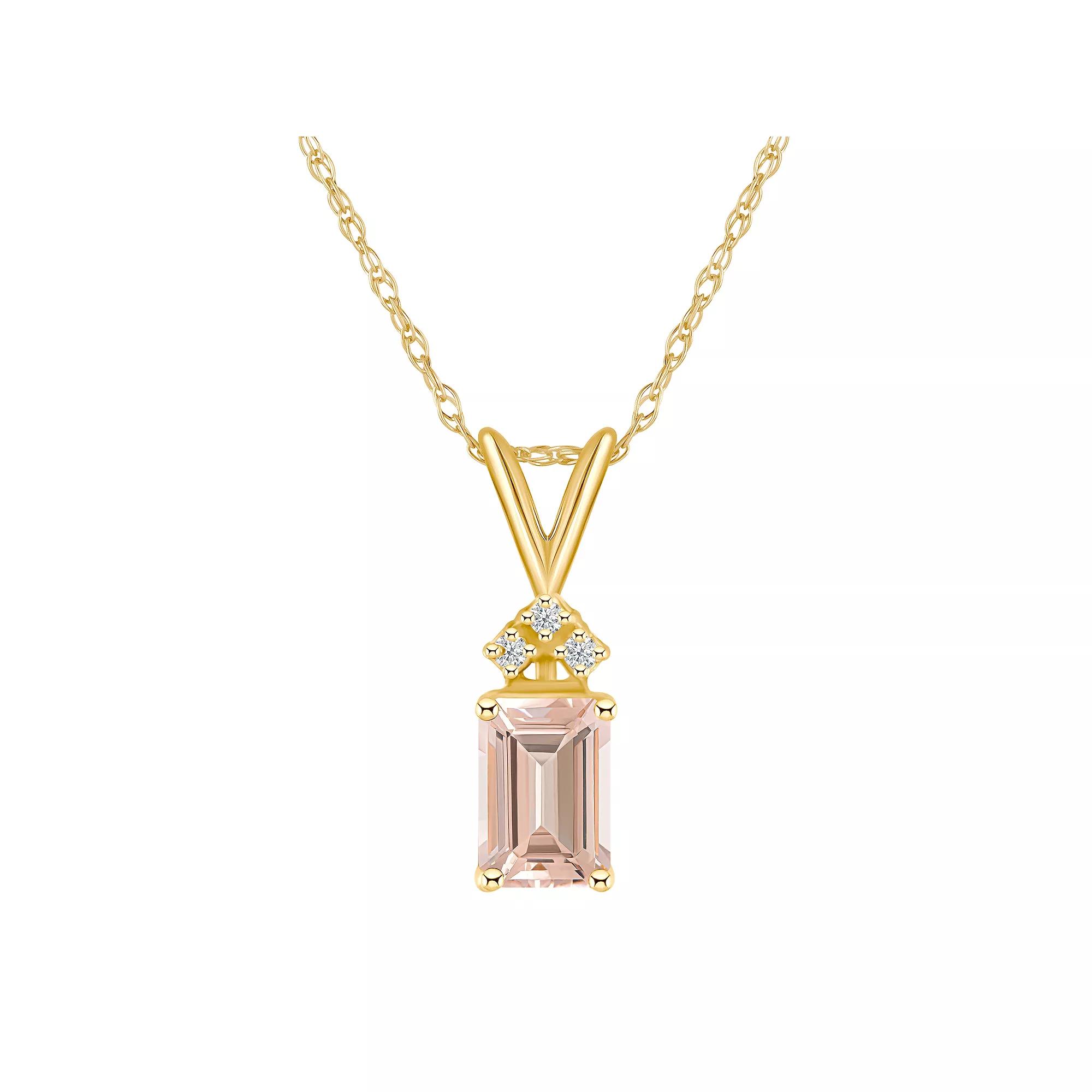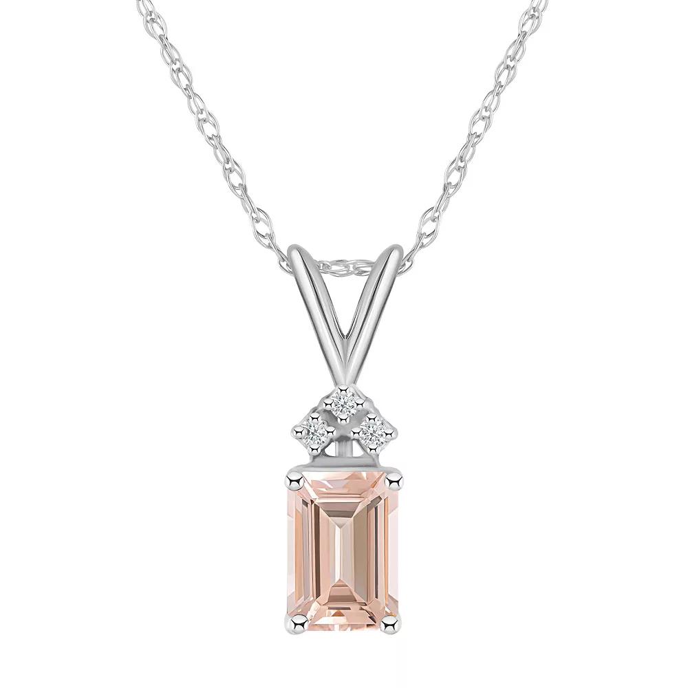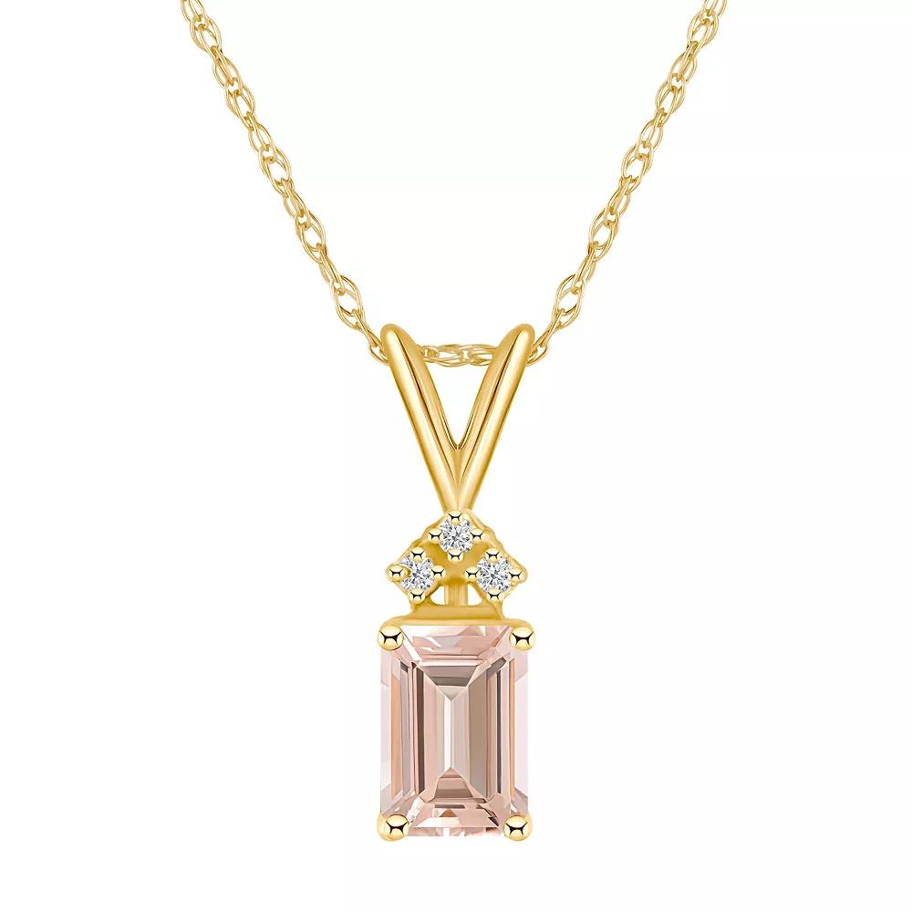 Celebration Gems 14k Gold Emerald Cut Morganite & Diamond Accent Pendant Necklace, Women's, Size: 18"