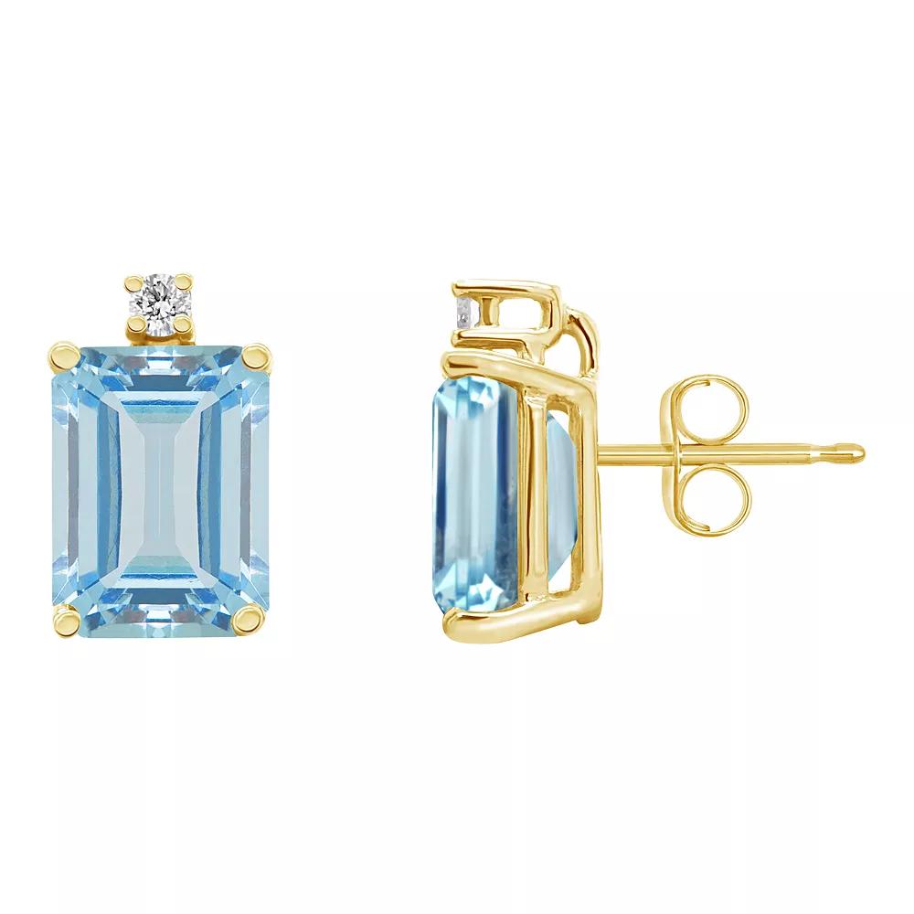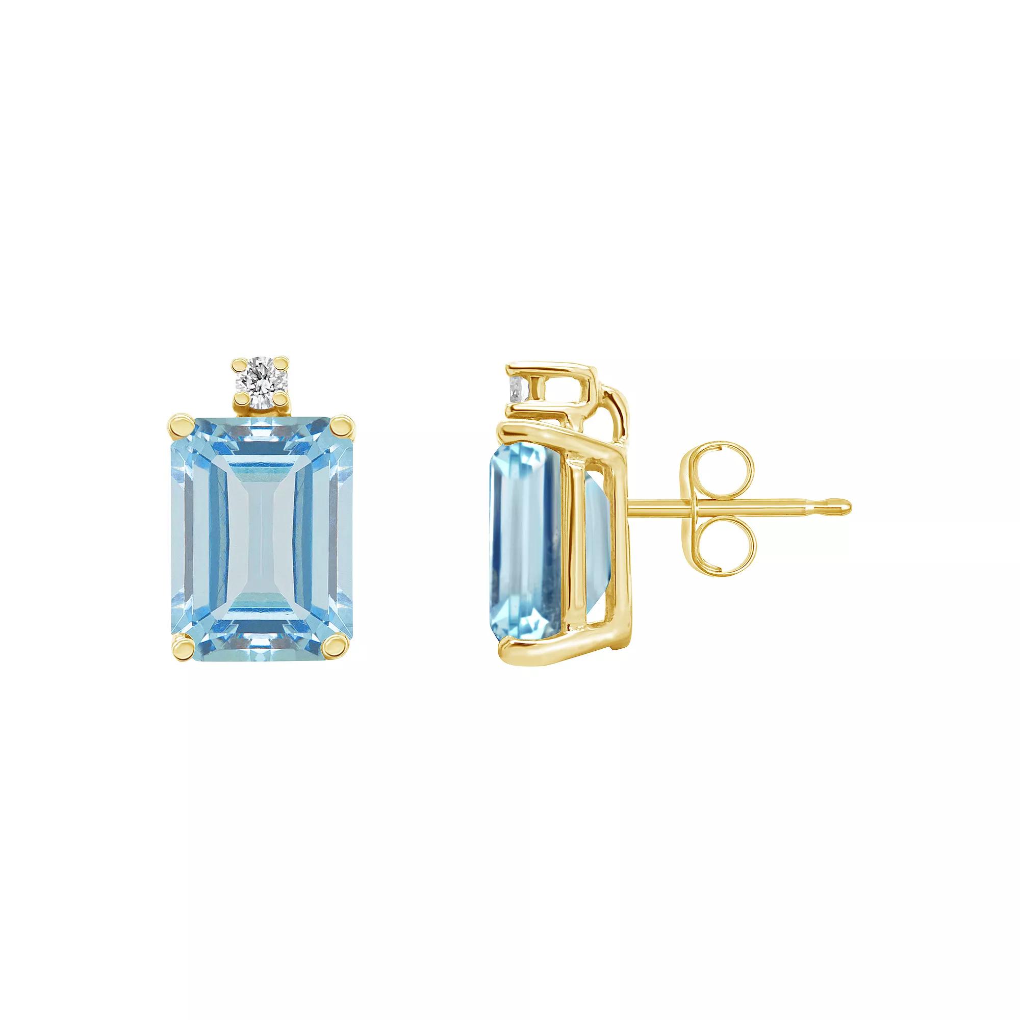 Celebration Gems 14k Gold Gemstone & Diamond Accent Stud Earrings, Women's, Aquamarine
