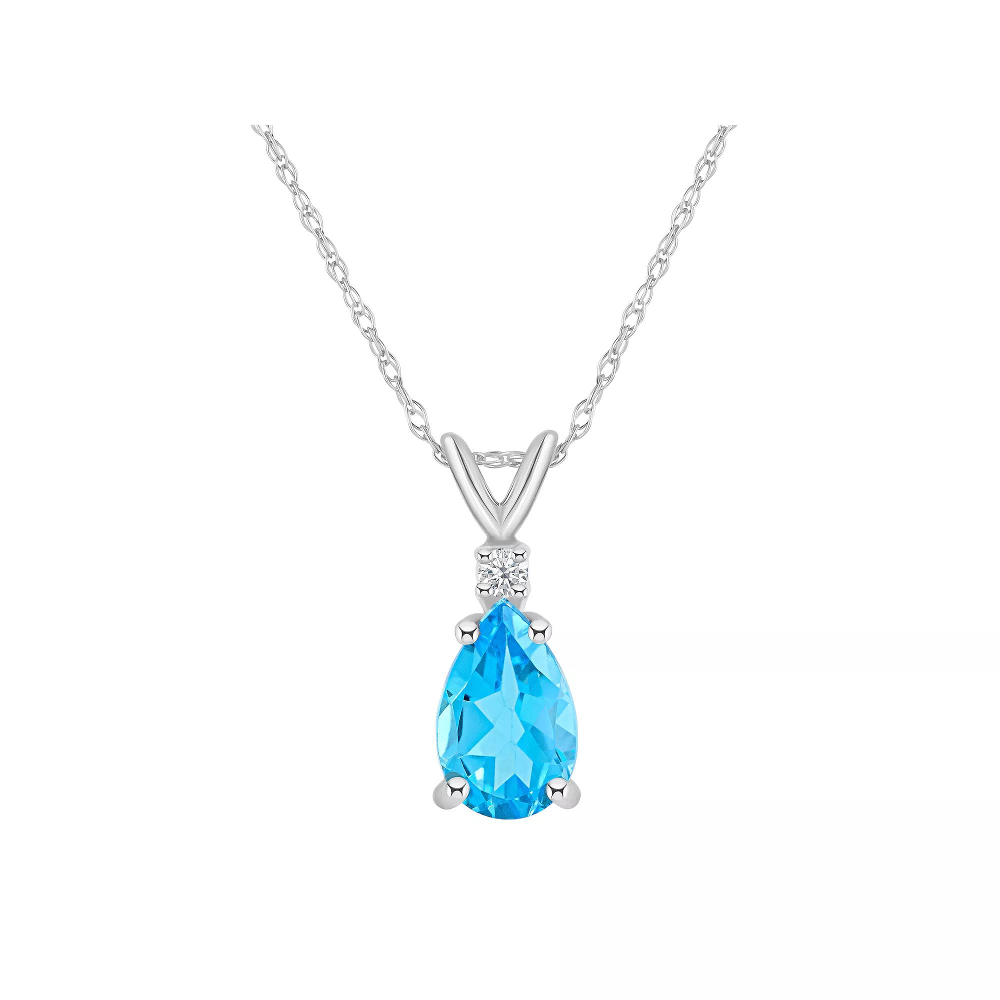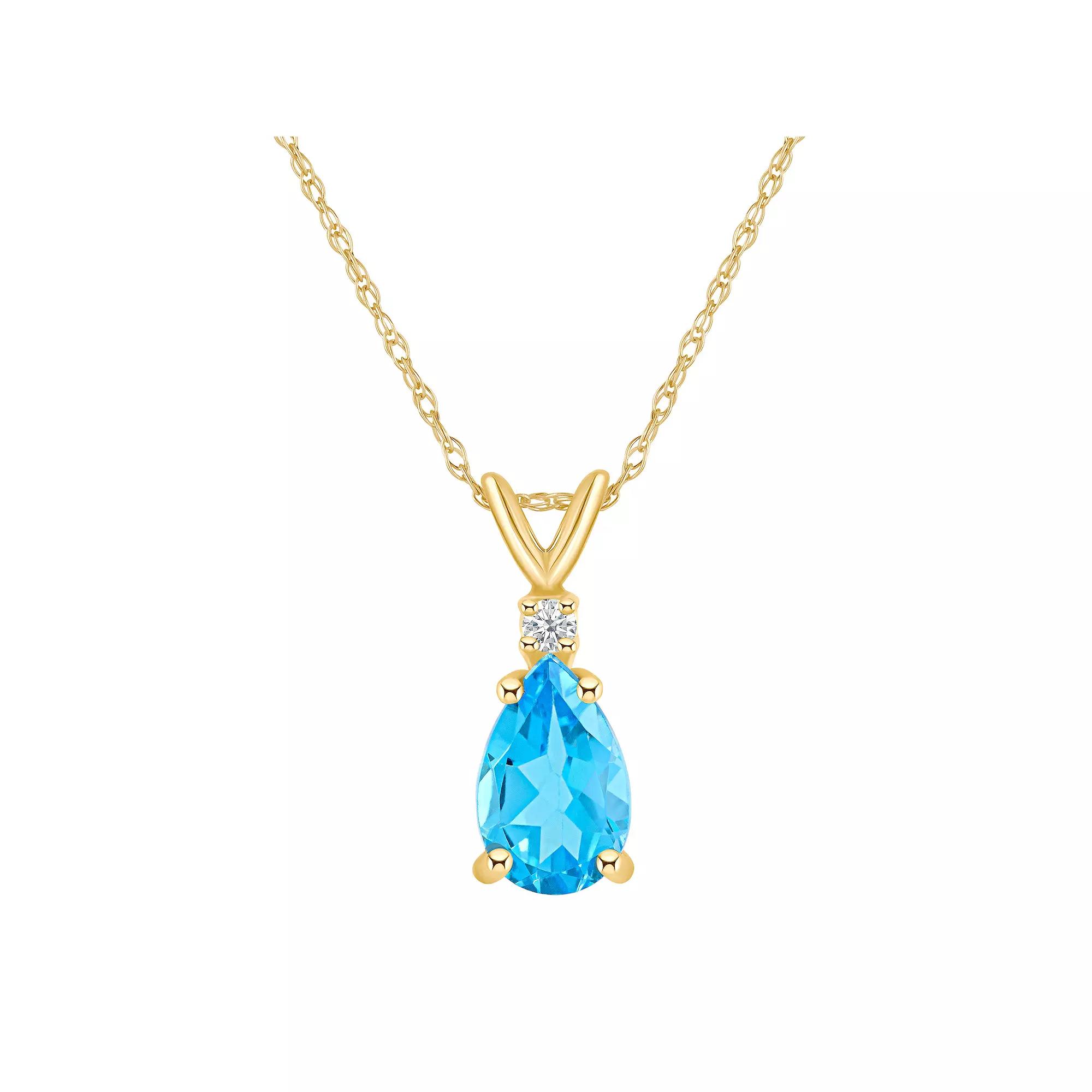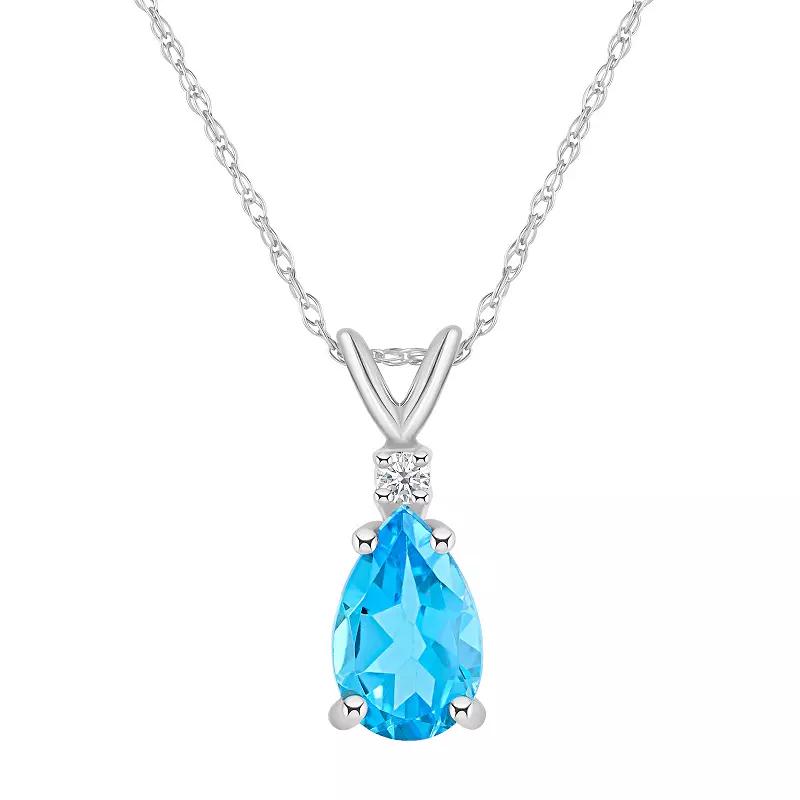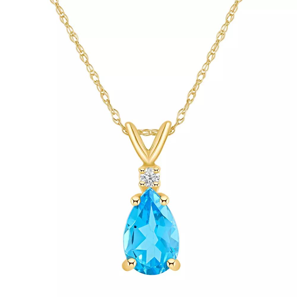 A stunning 8x5mm Pear Shape Blue Topaz is enhanced by a glistening diamond accent in this beautiful pendant necklace. Available in your choice of 14K White or Yellow Gold. | Belk & Co 14K Gold 8X5 Pear Shape Blue Topaz Diamond Accent Pendant