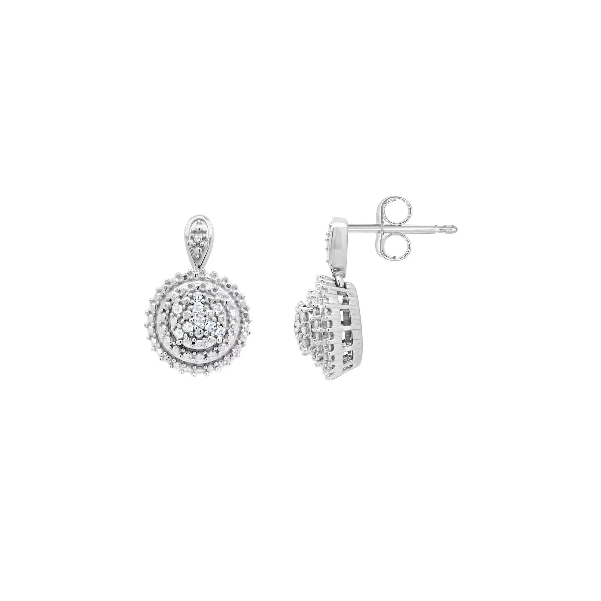Accessorize in style with these Celebration Gems sterling silver 1/10 carat T.W. diamond drop earrings. Click on this JEWELRY & WATCHES GUIDE to learn about fit, styles, materials and more! Accessorize in style with these Celebration Gems sterling silver 1/10 carat T.W. diamond drop earrings. Click on this JEWELRY & WATCHES GUIDE to learn about fit, styles, materials and more! FEATURES Dimensions: 15.73 mm x 9.79 mm Backings: post Nickel free Metal: sterling silver Plating: rhodium Finish: polished Packaging: boxedDIAMOND DETAILS Total weight: 1/10 ct. Color grade: H-I Clarity: I3 Shape: round Setting: prong Gemstones may have been treated to enhance their appearance. Special care may be required. Please visit our Gemstone Treatment & Special Care Guide for more information. Diamond weights are approximate. Diamond Total Weights may vary between .01 and .13 ct. Some diamonds consist of fewer than 17 facets. Image(s) may be enlarged to show detail. Size: One Size. Color: White. Gender: female. Age Group: adult.
