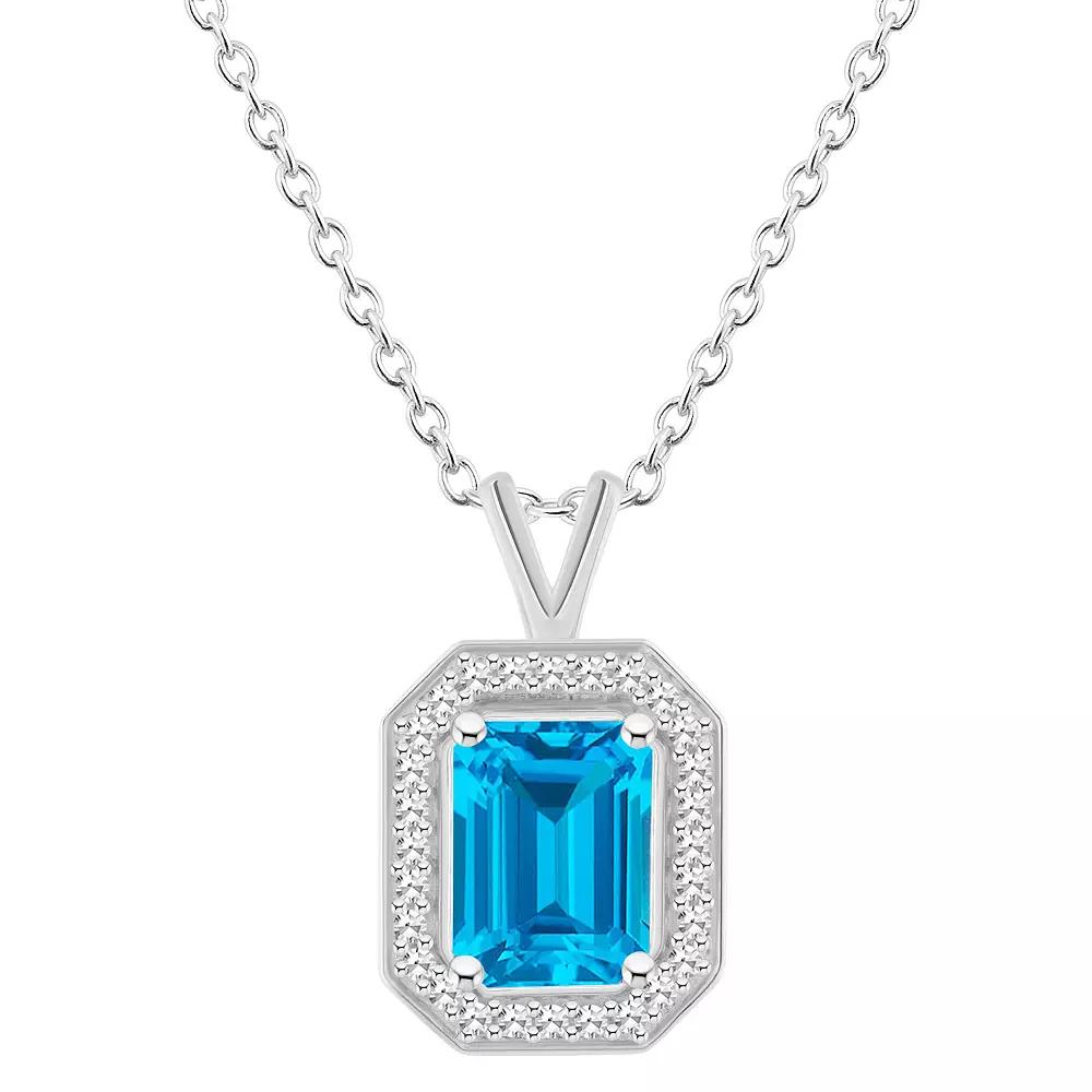 Celebration Gems Sterling Silver Emerald Cut Gemstone & 1/8 Carat T.W. Diamond Halo Pendant Necklace, Women's,  Product Image
