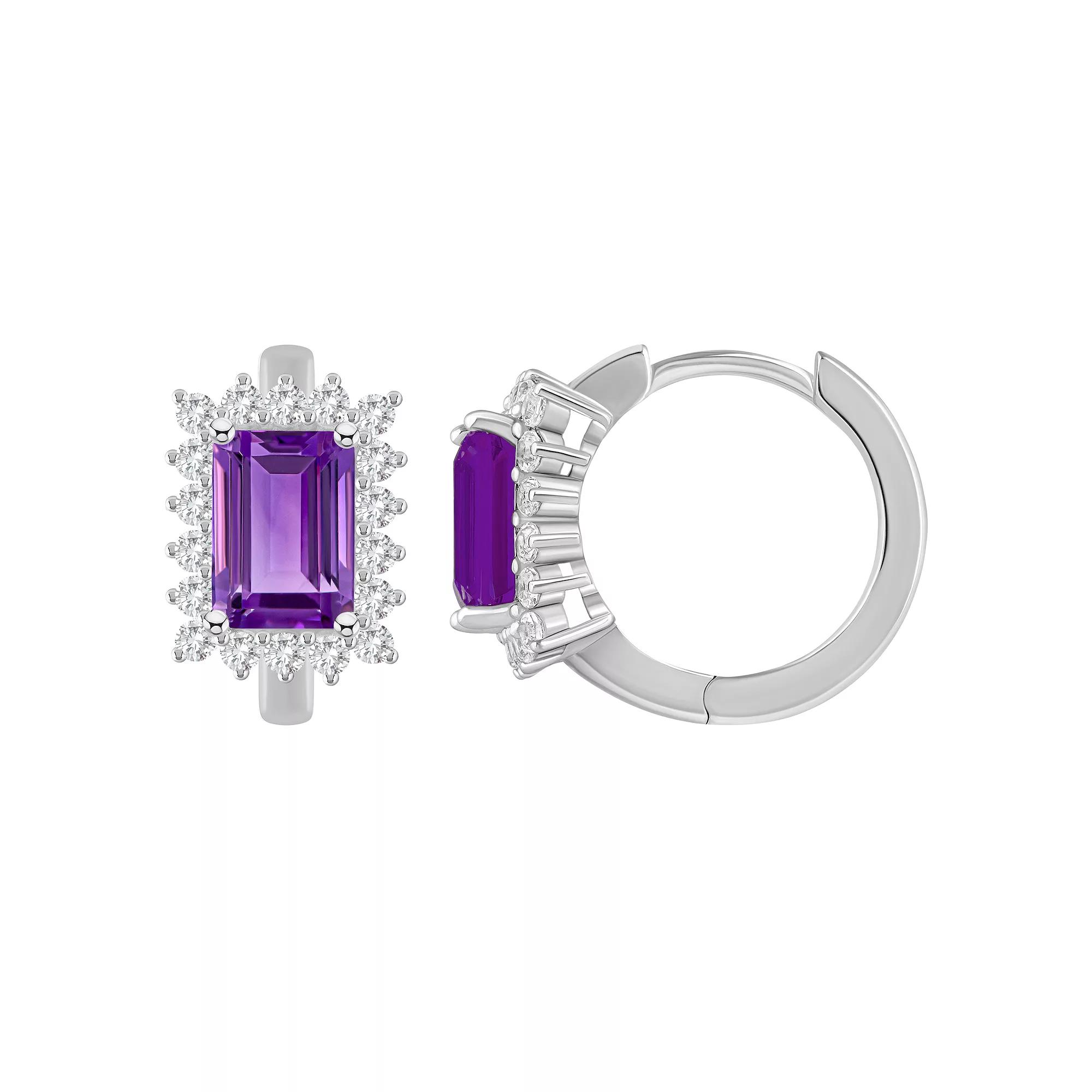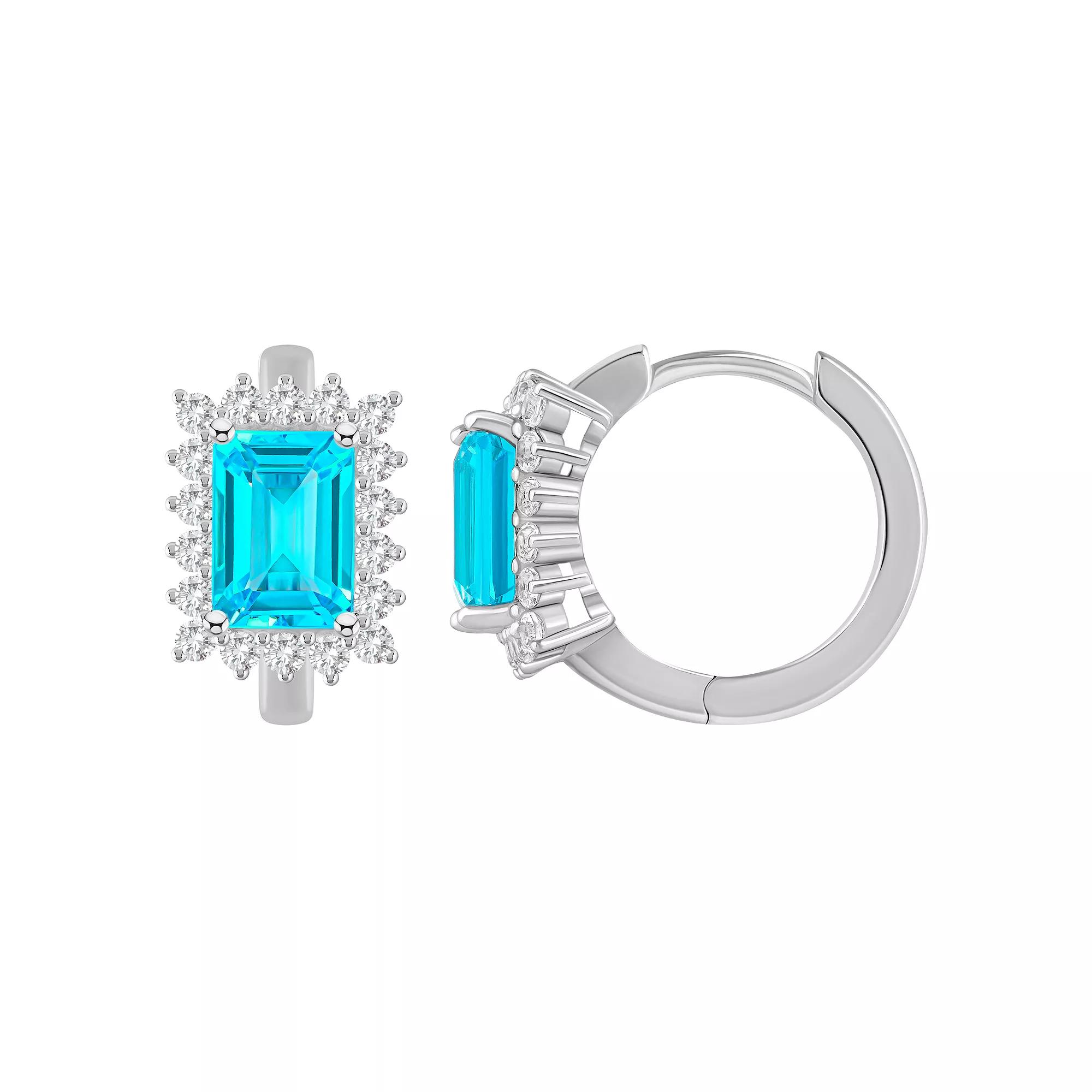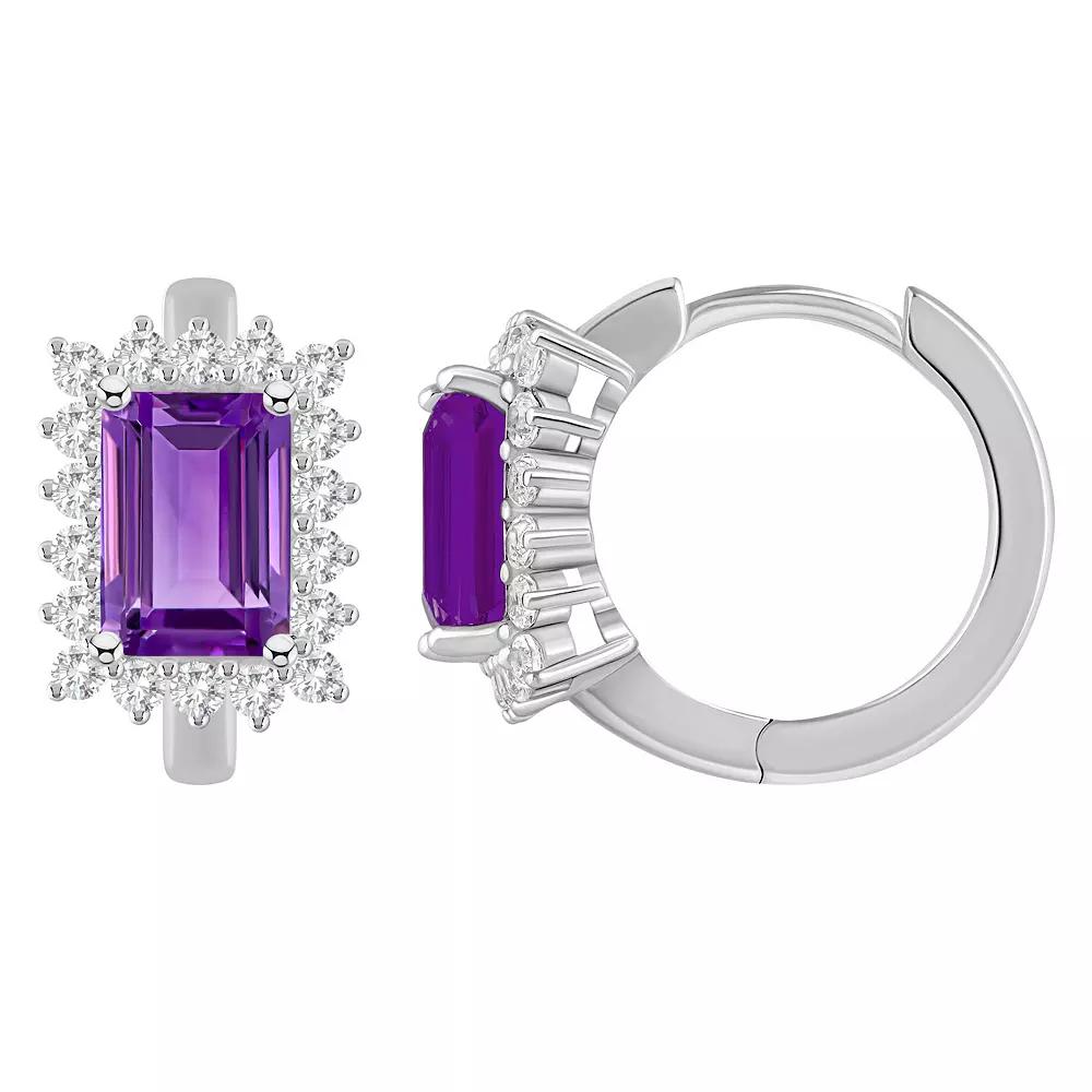 Brighten your look with the colorful style of these Celebration Gems gemstone and white topaz huggie hoops. Brighten your look with the colorful style of these Celebration Gems gemstone and white topaz huggie hoops. Length: 1/2 in. Backings: click-it Nickel free Metal: sterling silver Plating: rhodium Finish: polished Packaging: boxedSTONE DETAILS Center stone size: 7 mm x 5 mm Shape: emerald cut, round Setting: prong Gemstones may have been treated to enhance their appearance. Special care may be required. Please visit our Gemstone Treatment & Special Care Guide for more information. Please note, due to the high value of this item, a signature may be required upon delivery. Color: Orange. Gender: female. Age Group: adult.