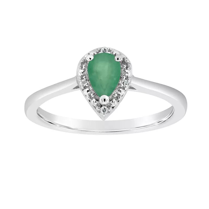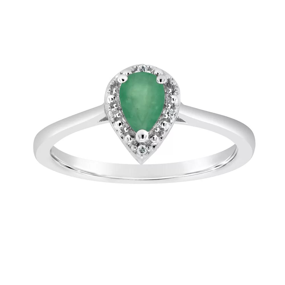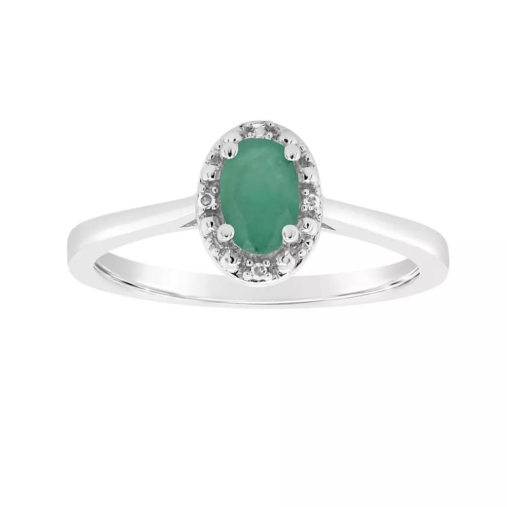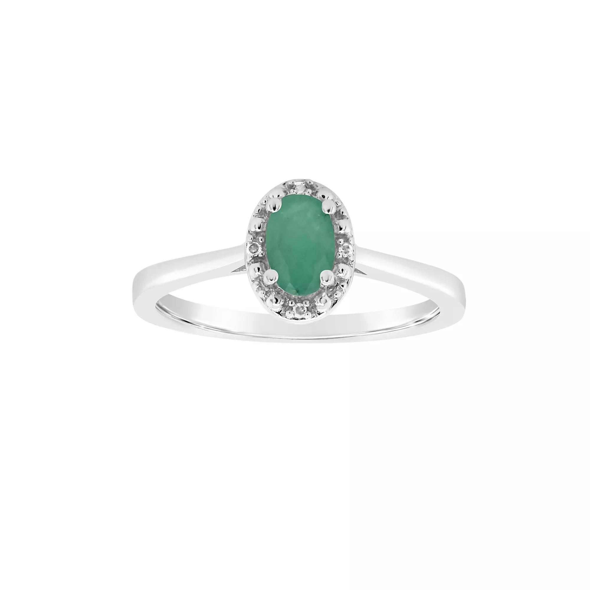 This lovely Diamond Accent halo ring showcases a 6x4mm Oval Emerald gemstone. Perfect for any occasion. Crafted in Sterling Silver. | Belk & Co Sterling Silver 6X4Mm Oval Emerald Diamond Accent Halo Ring