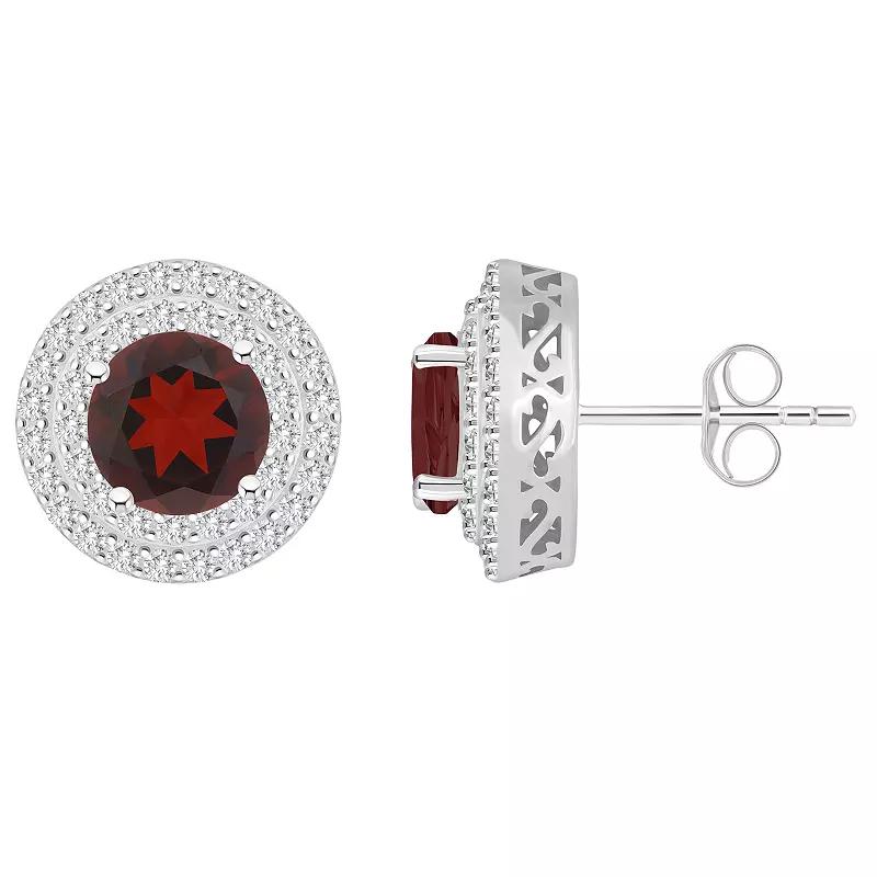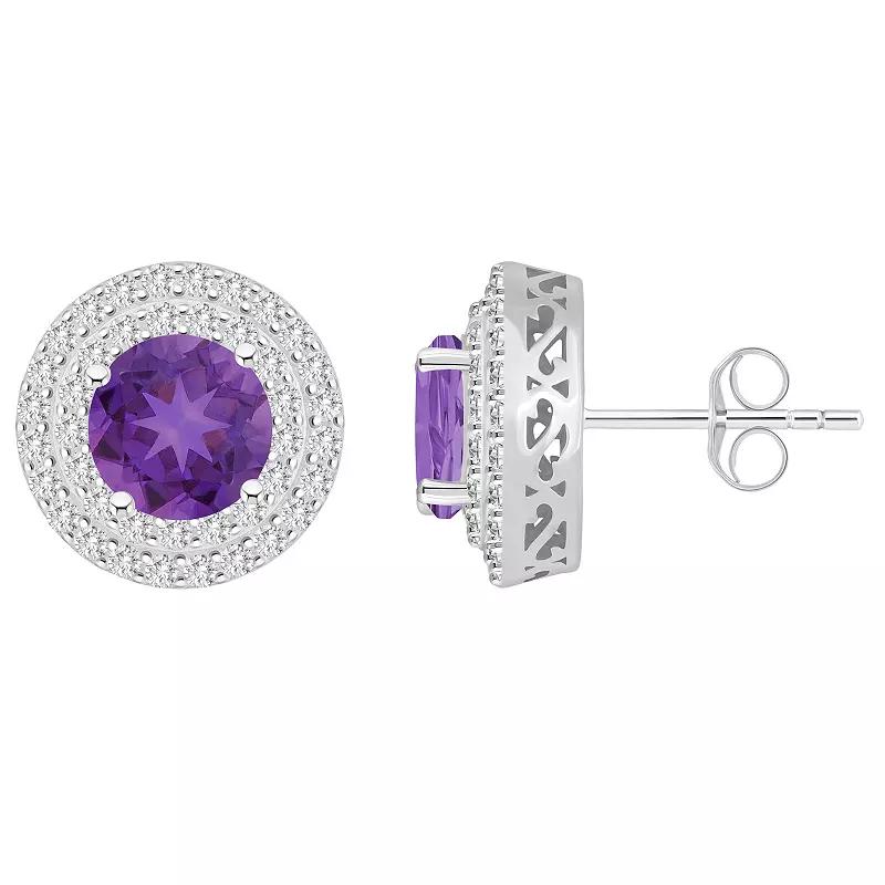 Crafted with sterling silver, these amethyst and white topaz double halo earrings offer an elegant look you'll love. Crafted with sterling silver, these amethyst and white topaz double halo earrings offer an elegant look you'll love. Nickel free Metal: sterling silver Backings: post Packaging: boxed Plating: rhodium Finish: polished Length: 0.5 in.STONE DETAILS Stone type: amethyst, white topaz Center stone weight: 2 1/2 ct. Total weight: 3 1/3 ct. Size: 7 mm Shape: round Setting: pave, prong Gemstones may have been treated to enhance their appearance. Special care may be required. Please visit our Gemstone Treatment & Special Care Guide for more information. Please note, due to the high value of this item, a signature may be required upon delivery. Size: One Size. Color: Purple. Gender: female. Age Group: adult.
