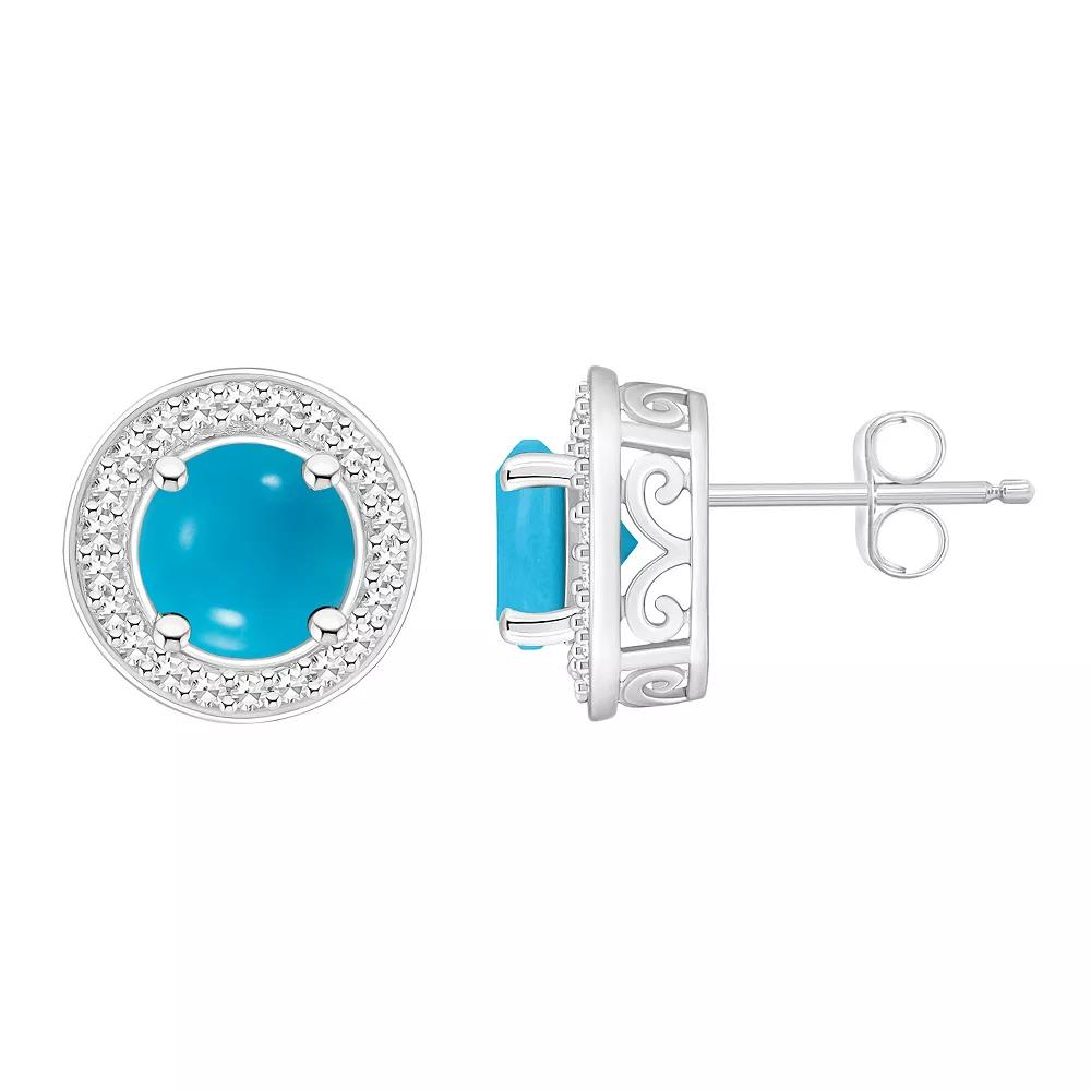 Celebration Gems Sterling Silver Round Gemstone & 1/5 Carat T.W. Diamond Halo Stud Earrings, Women's, Turquoise