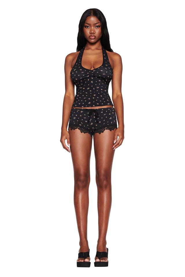 CELESTE TOP - BLACK : DITSY FLORAL