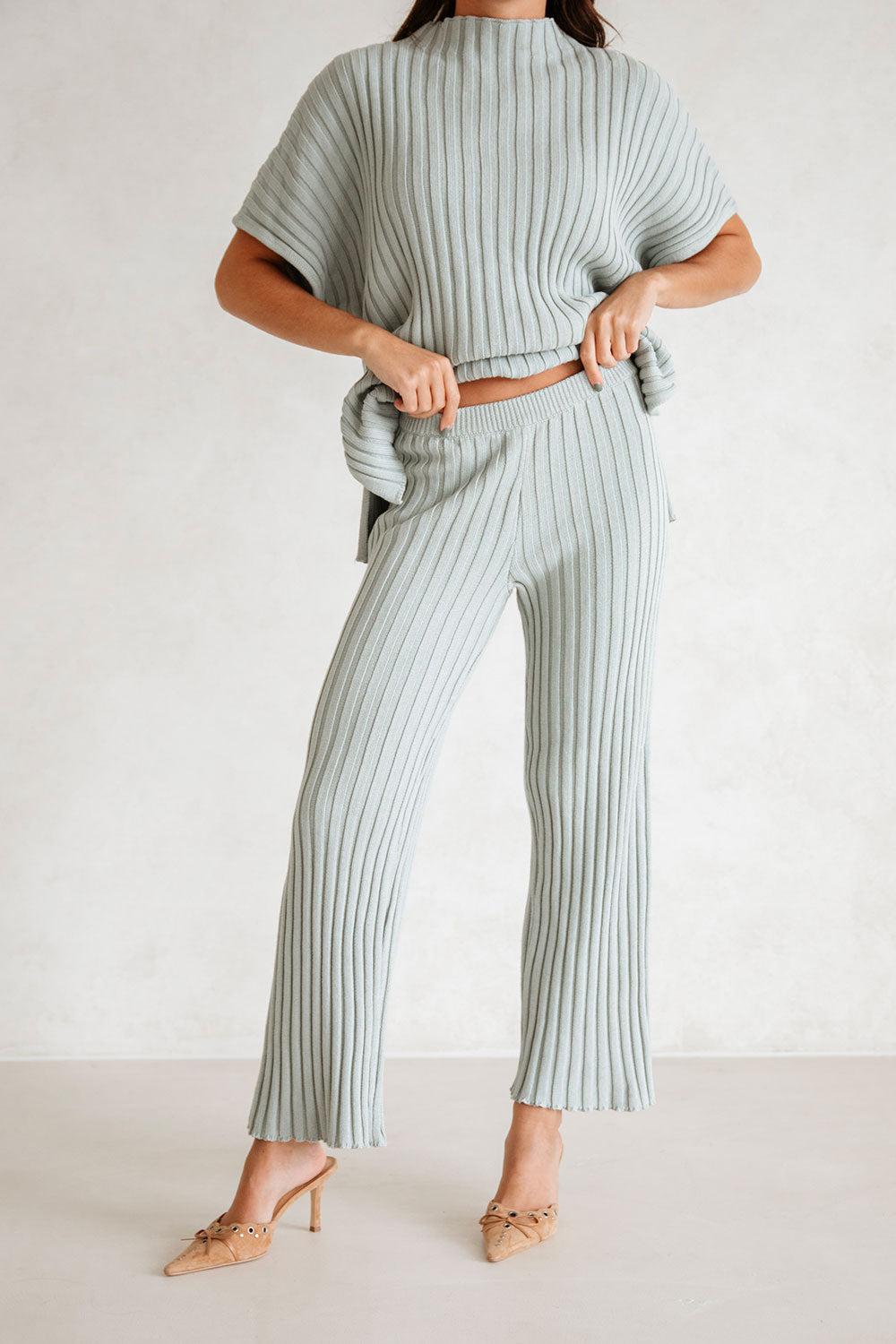 *BACK IN STOCK* Super cute as a set or styled with a basic tank! The Celine Pants are made from a ribbed cotton knit fabric in a dusty blue hue and feature a high elasticated waist and full length pants. Get the set with the Celine Top! Designed exclusively by Sabo.