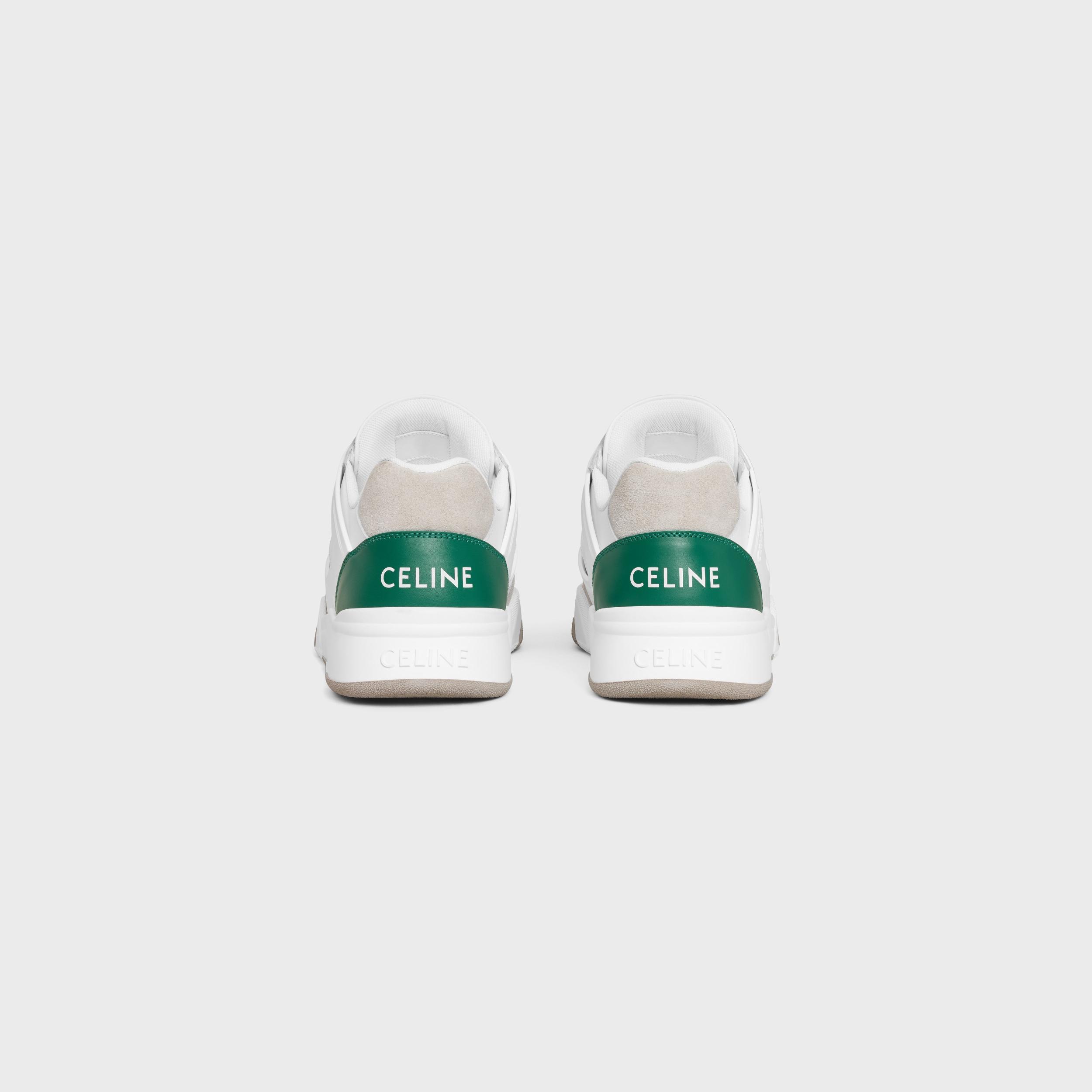 CELINE TRAINER CT-07 LOW LACE-UP SNEAKER in CALFSKIN AND SUEDE CALFSKIN | GREY/OPTIC WHITE/GREEN - Buy the latest collections of SNEAKERS on the official CELINE online store