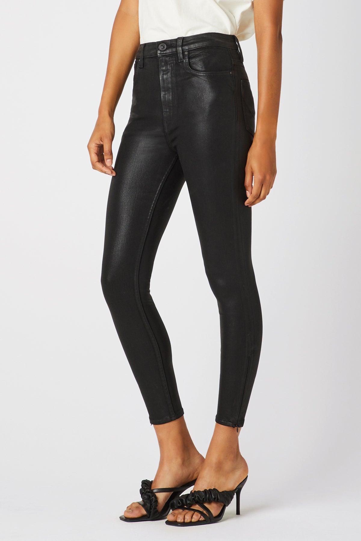 Description Rise and shine. The Centerfold Extreme High-Rise Super Skinny Jean in High Shine Black is cut with an ultra-elevated, leg-lengthening rise from a wax-coated stretch fabric and features ankle zippers for a perfectly tight taper. Product Details 5 Pocket StyleFront Rise: 12", Leg Opening: 9", Inseam: 28"Model wearing size 25Measurements based on size 27 Fit & Care Content: 53.9% Cotton 37.9% Modal 5.6% Dty 2.6% LycraMachine wash cold with like colorsDo not bleachTumble dry low or hang to dry