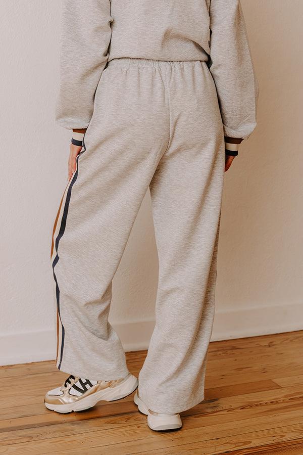 - These wide leg pants is perfect for lounging at home or jetsetting in style! A cute wardrobe essential that's ideal for casual and trendy looks. - Unlined material - Cream, navy, and brown hued accent stripes down the legs - An elastic waistline featuring a functional drawstring - Functional front pockets - A wide leg silhouette that ends in straight hemlines