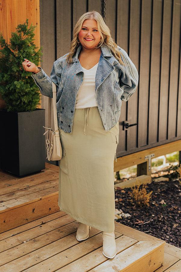 - Perfect for chic city style, this unique skirt will elevate your casual wardrobe! It exudes trendy energy with its sleek material and cargo pockets. Redefine your wardrobe with this stylish piece that puts a modern twist on the classic maxi skirt. - Unlined sleek material - An elastic banded waistline with a functional drawstring - Low cargo pockets as well as faux pocket accent flaps on the sides and back - A relaxed silhouette that ends in a maxi length hemline with a back accent slit Measurements 1XL : Hip 46", Length 35", Waist 36-38". 2XL : Hip 50", Length 36.5", Waist 40-42". 3XL : Hip 54", Length 37.5", Waist 44-46".