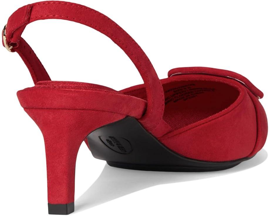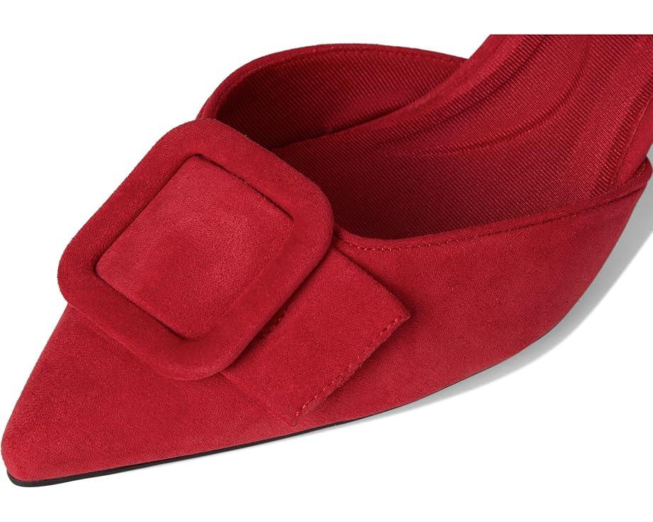The Anne Klein® Iva is a manageable yet stylish kitten heel that offers the perfect balance of grace and stability, allowing you to stride confidently and comfortably. The pointed toe pair has faux leather upper with a large buckle adornment and adjustable buckle closure at the slingback strap.