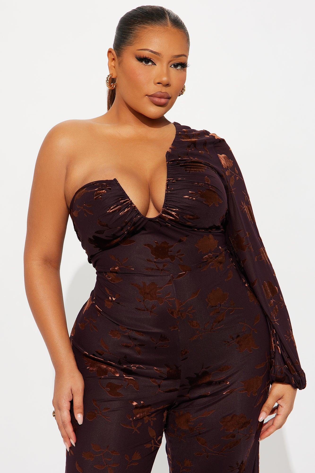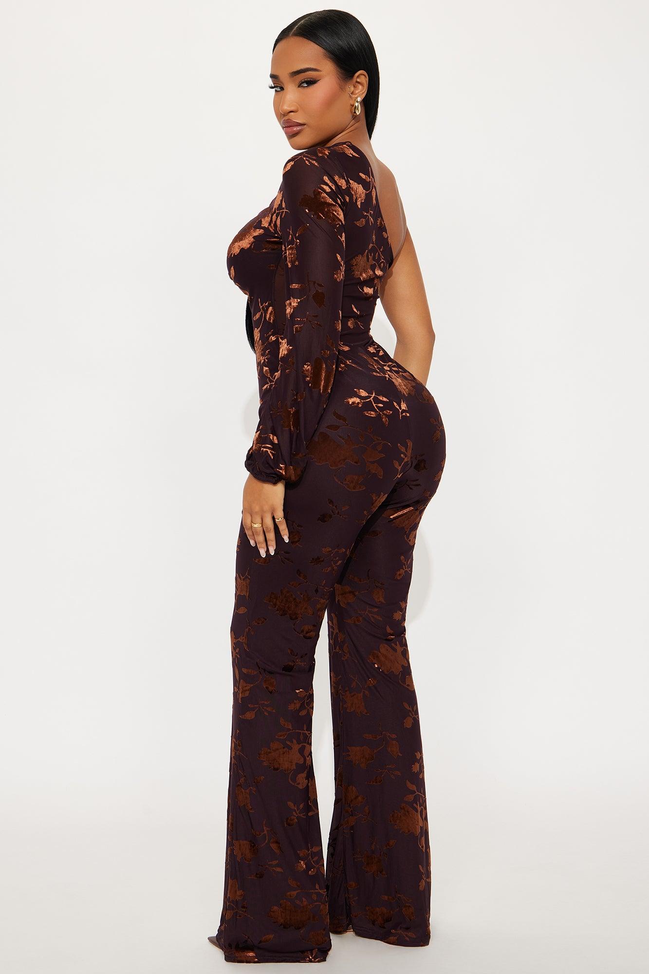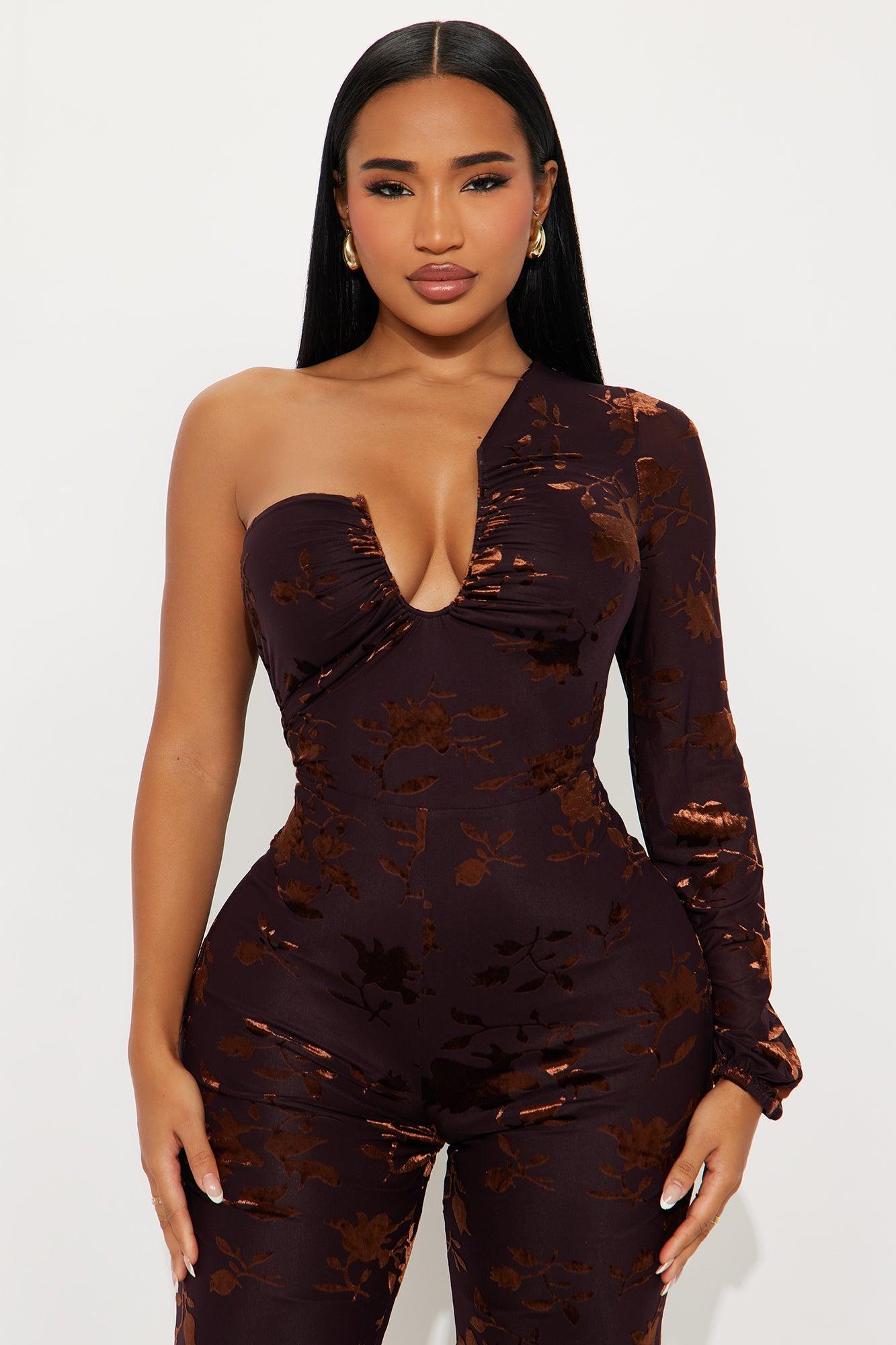 Cera One Sleeve Mesh Jumpsuit - Dark Brown Female