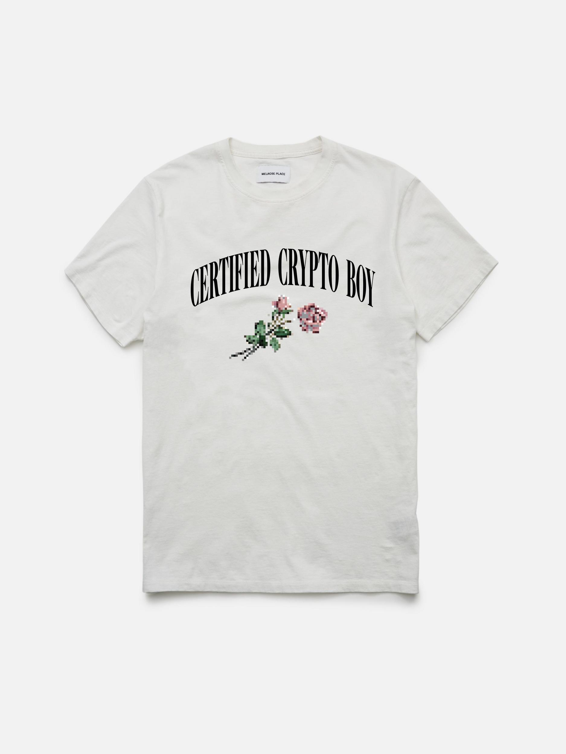 Limited edition tee suggesting there are only a few of these in existence. Less than .01 ETH for now. The Certified Crypto Tee is made to order and will ship out in 1-2 weeks. All made to order items are final sale and are not eligible for returns or exchanges.
