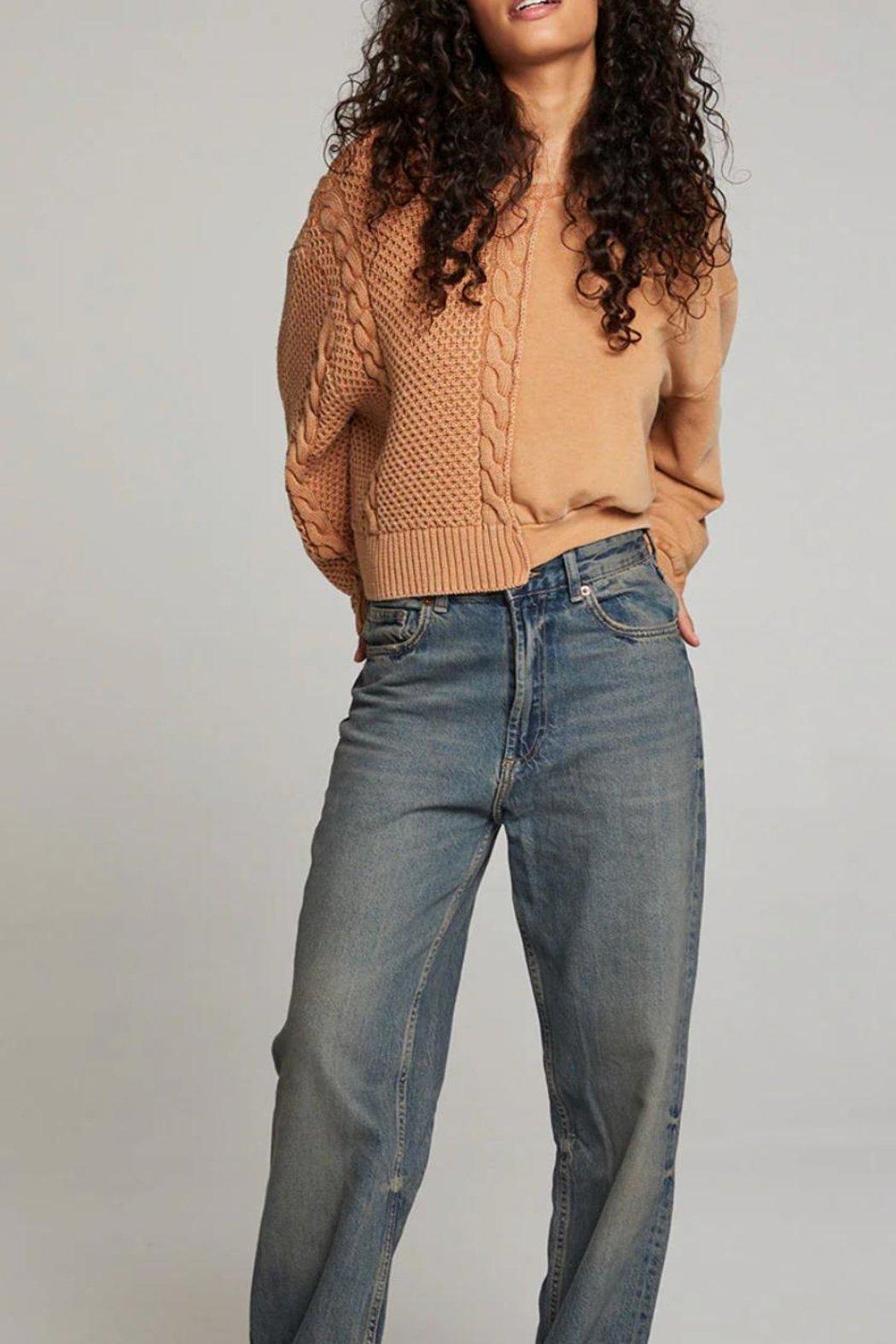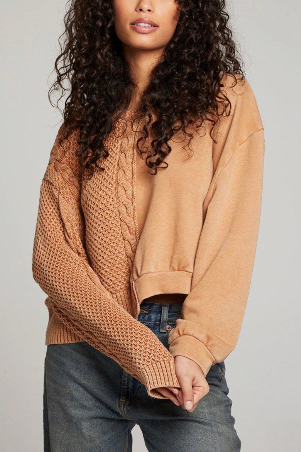 The Cloud Toffee Pullover boasts a unique combination of smooth and textured fabrics, elevating its avant-garde appeal. Its cropped yet roomy fit creates a striking silhouette that pairs flawlessly with high-waisted jeans. The daring toffee colorway adds a modern twist to the classic neutral-toned sweatshirt style.