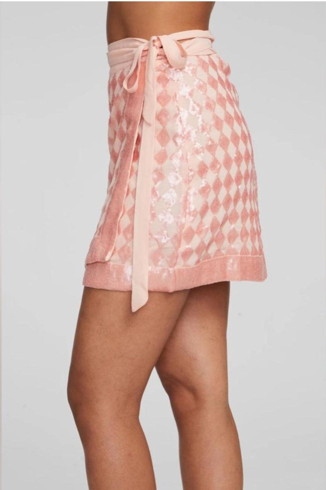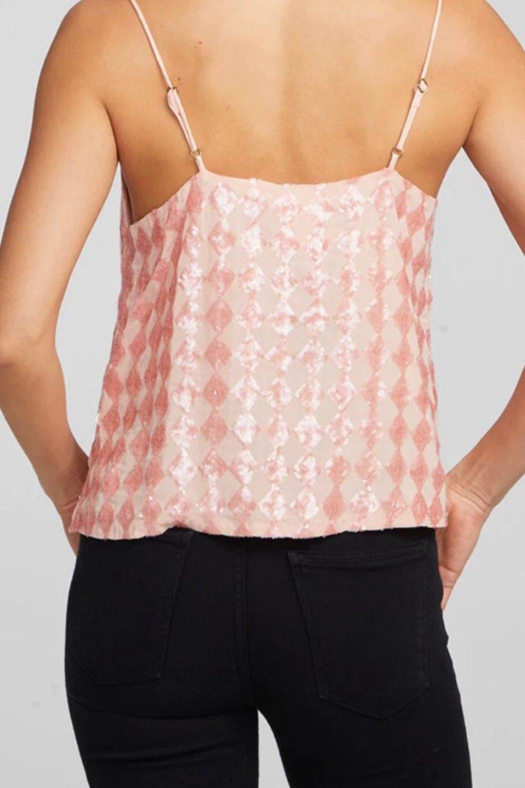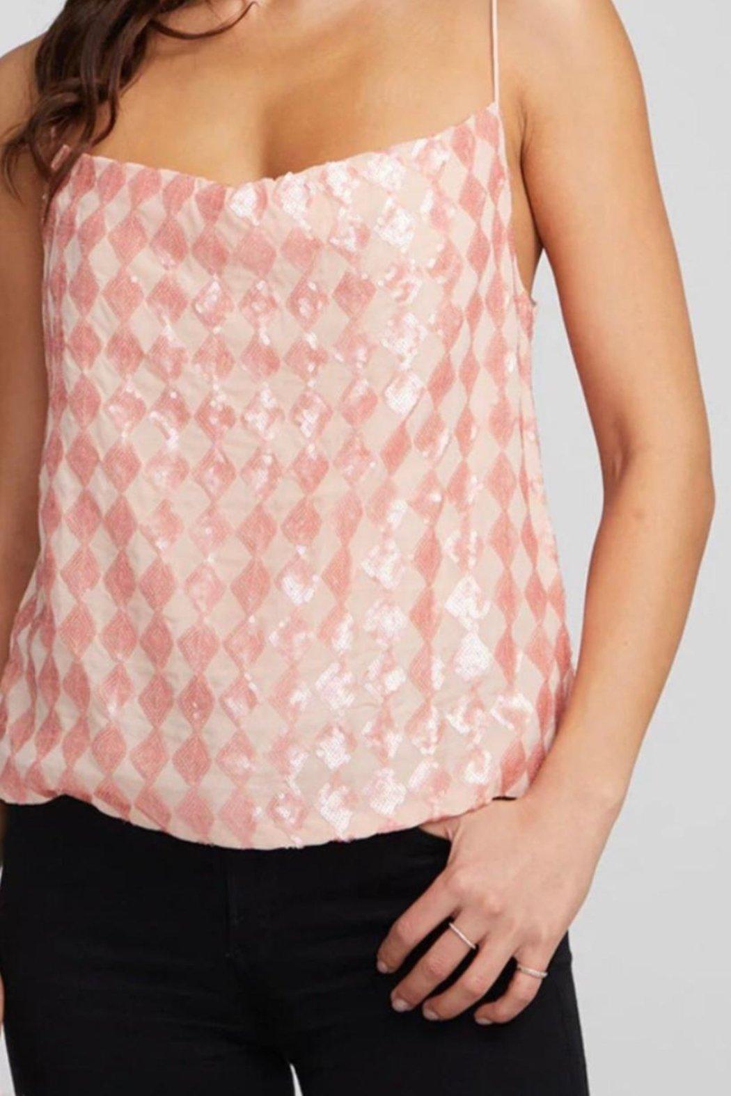 Did someone say holiday party? Our Bleeker Tank Top Embellished Check features Sequins and a Tie at the waist. Pair with strappy heels and you're out the door. Blush pink is always in style, so keep this at the Front of your closet! Fabric Content: 100% Viscose Model is 5'9" and wearing size small