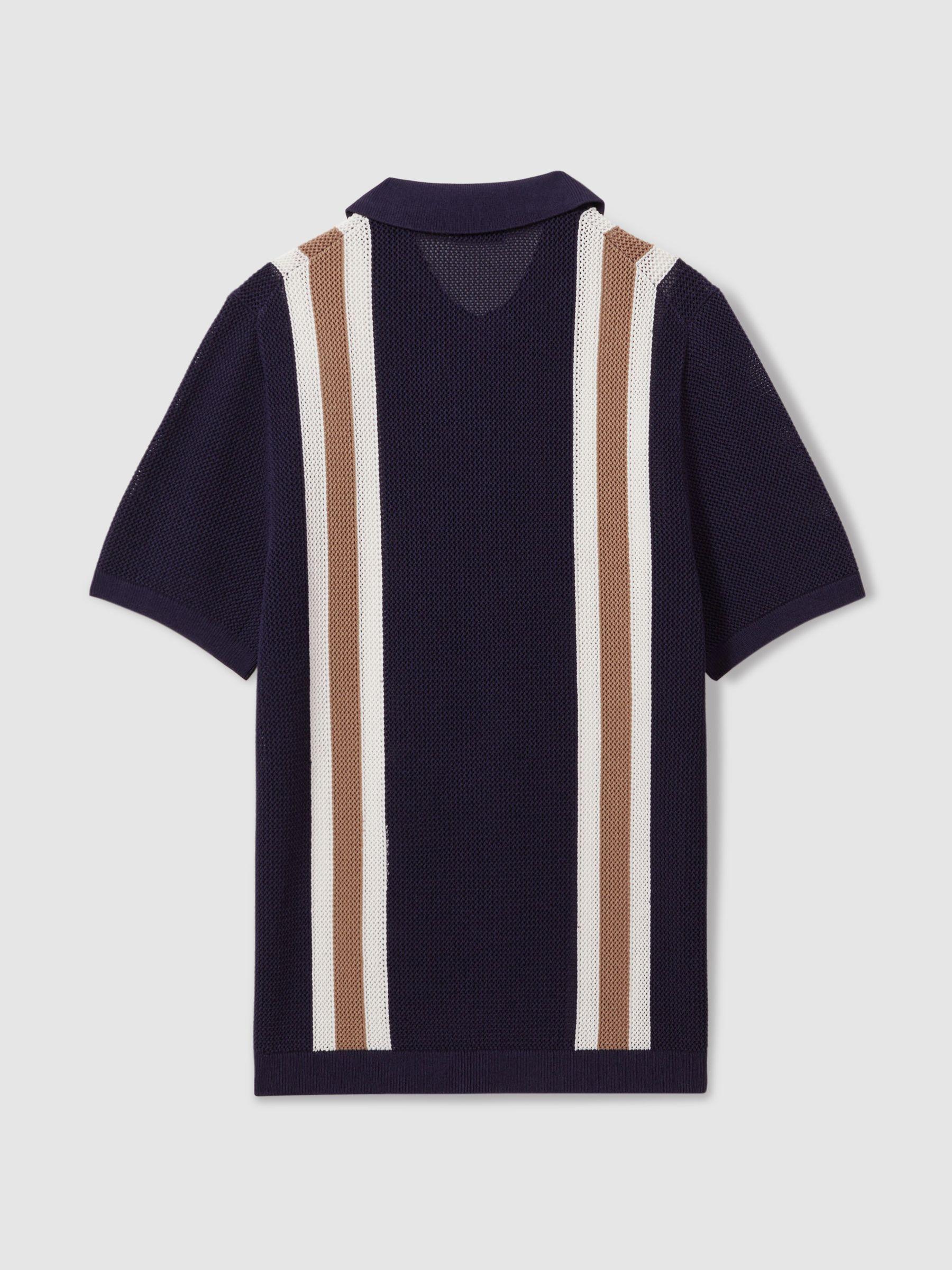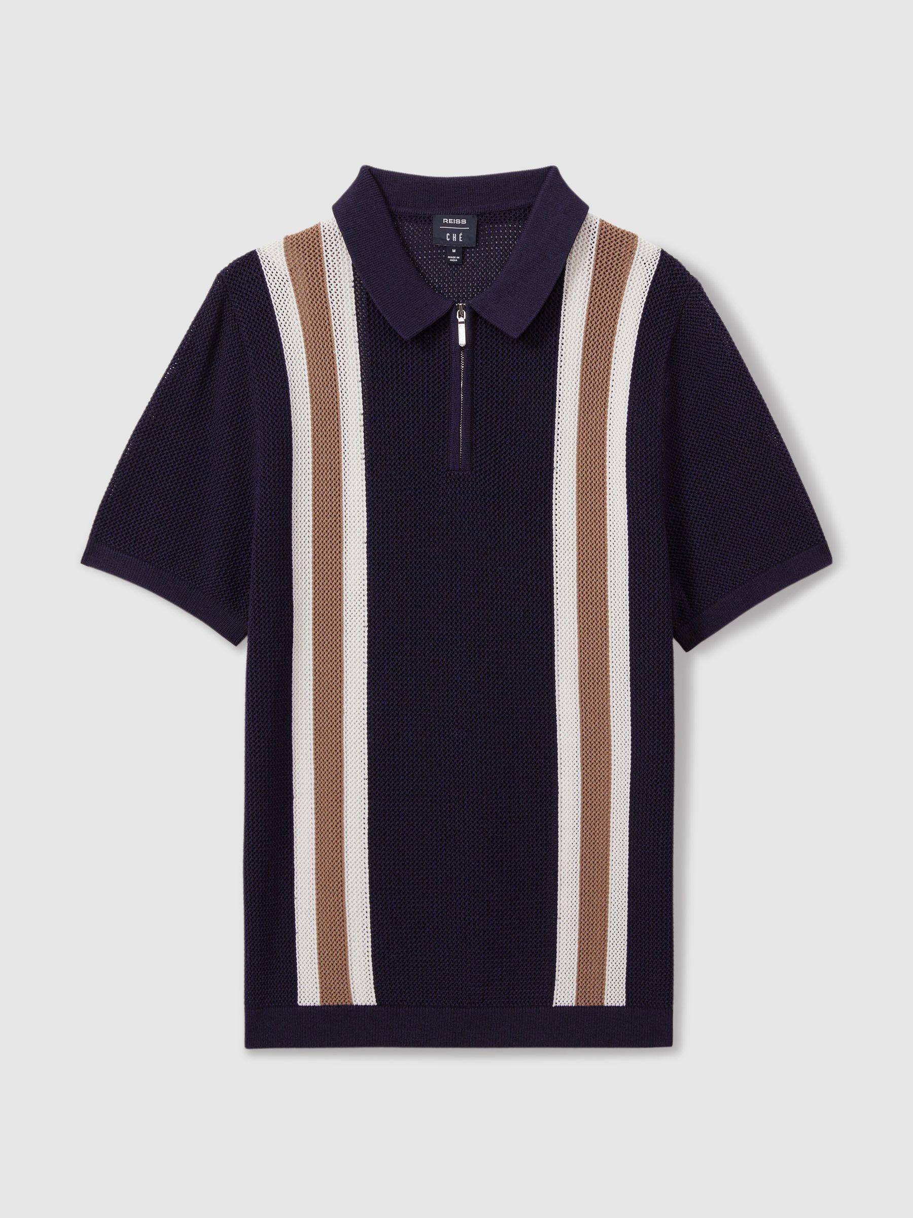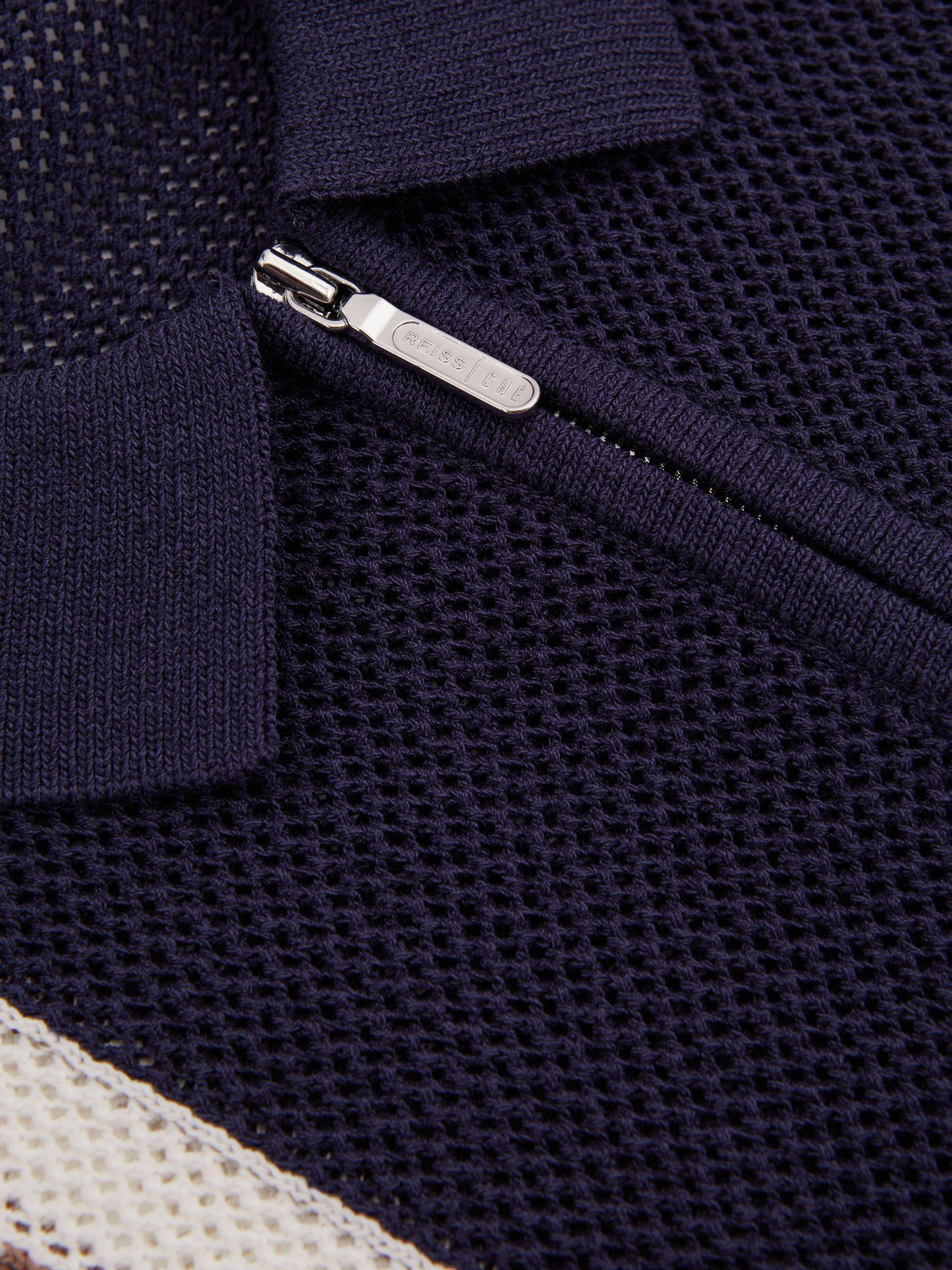 The Ricardo updates a classic half-zip polo shape with a tactile open-stitch knit construction. Contrasting stripe detailing elevates the side of the garment. Open-stitch construction. Half-zip polo neckline. Contrast stripe detailing. Season 3 of the Reiss, Ché collaboration offers elevated resort styling, playfully inspired by 1950s ice cream and advertising signage. Encapsulating a vacation state of mind, each piece offers versatility, a laid-back attitude and vivid confidence. Measurements of model: 6ft0 / 183cm. The model is wearing a size M.