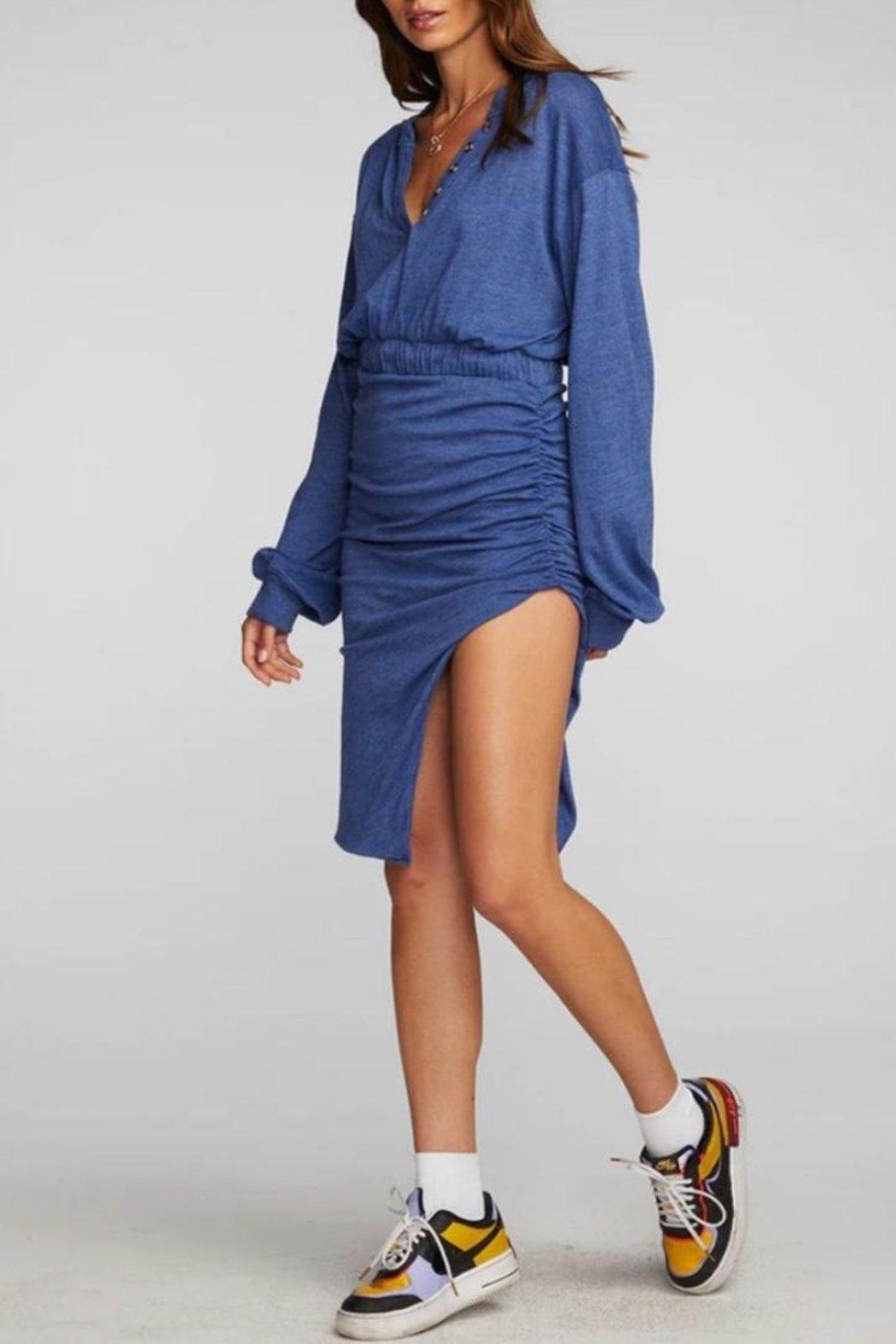 Show a little leg without going overboard Our Triblend midi dress with shirring at the waist and a side slit features imported cotton