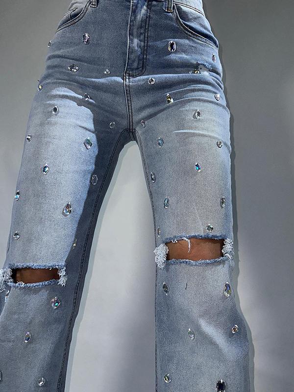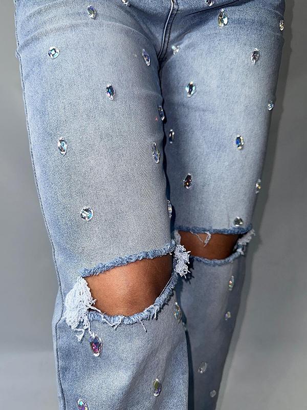 Chain Pendant Decoration Ripped Jeans