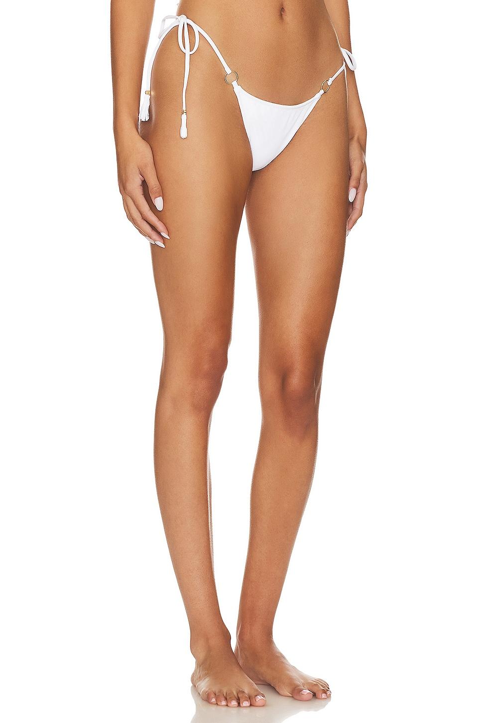 Bananhot Chain Bottom in Olive. - size S (also in L, M, XS) Bananhot Chain Bottom in Olive. - size S (also in L, M, XS) 78% recycled polyester 22% elastane. Made in Israel. Hand wash. Side tie closure with tassel ends. Ruched bum. Item not sold as a set. BANH-WX192. 225501. Designed by Israeli models Neta Alchamister and Noa Beny, Bananhot Bikinis - pronounced bah-na-note - is a fashion swimwear line. Their designs are functional, high quality and fashionable, promoting self-confidence and a natural, sun-kissed lifestyle. Bananhot's unique signature prints and cheeky cuts are designed in-house using dreamy color palettes and a fashion-forward sense of style.