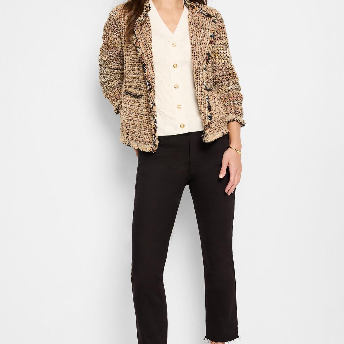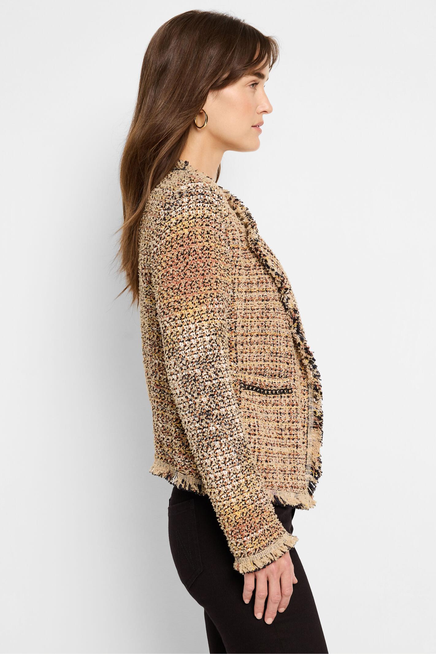 One of our all-time bestsellers, but with a key update: the namesake chain along the neckline for a more elevated appearance. Everything else is classic Fringe Mix: A blazer silhouette thats just as comfy as your favorite cardigan thanks to the super-soft knit construction. Designed to be super versatile, its a go-to you can wear to work, to events, or throw on over jeans for a quick casual look. The open front keeps things easy as do functional details like the snap cuffs and side pockets. Namesake fringe detailing around the edges highlights the quality and texture of the knit.