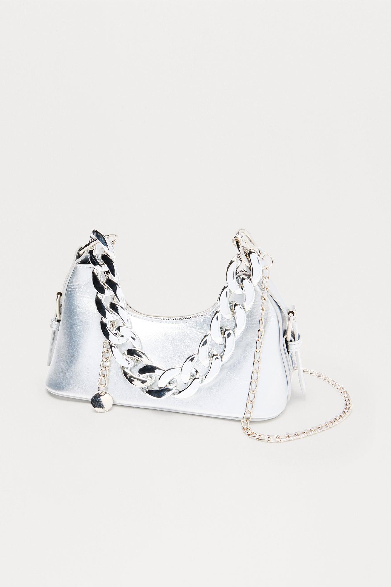 Chained Siren Metallic Faux Leather Handbag - Silver Female