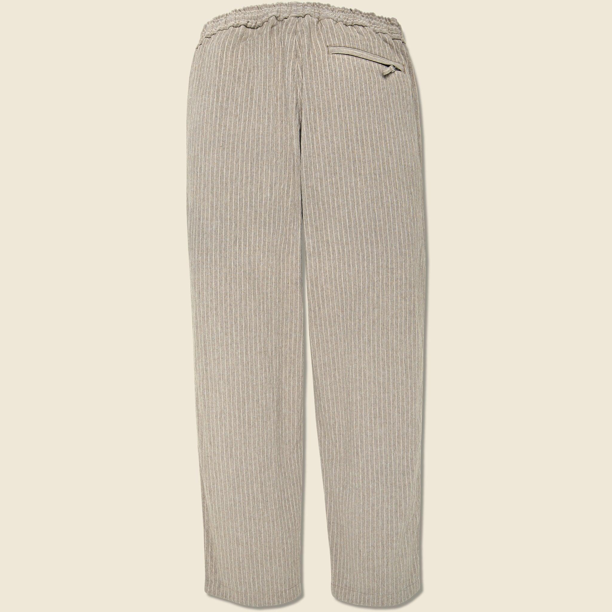 The Chalk Stripe Tyne Trouser is made with a soft, midweight cotton-poly blend that’s woven with a classic pinstripe pattern and 1% stretch for extra comfort. They have a perfectly relaxed fit that runs true to size and come with a pair of waist pockets, a single zipped back pocket, and a slightly cropped inseam for a modern finish.