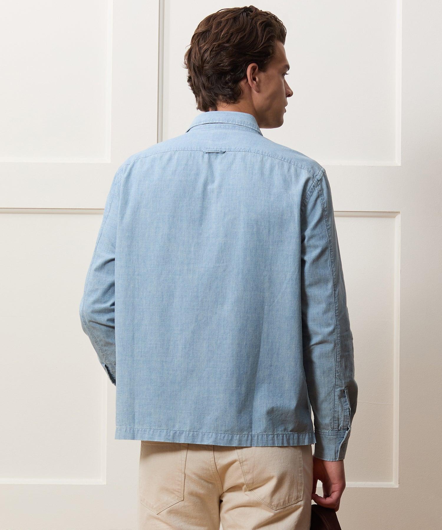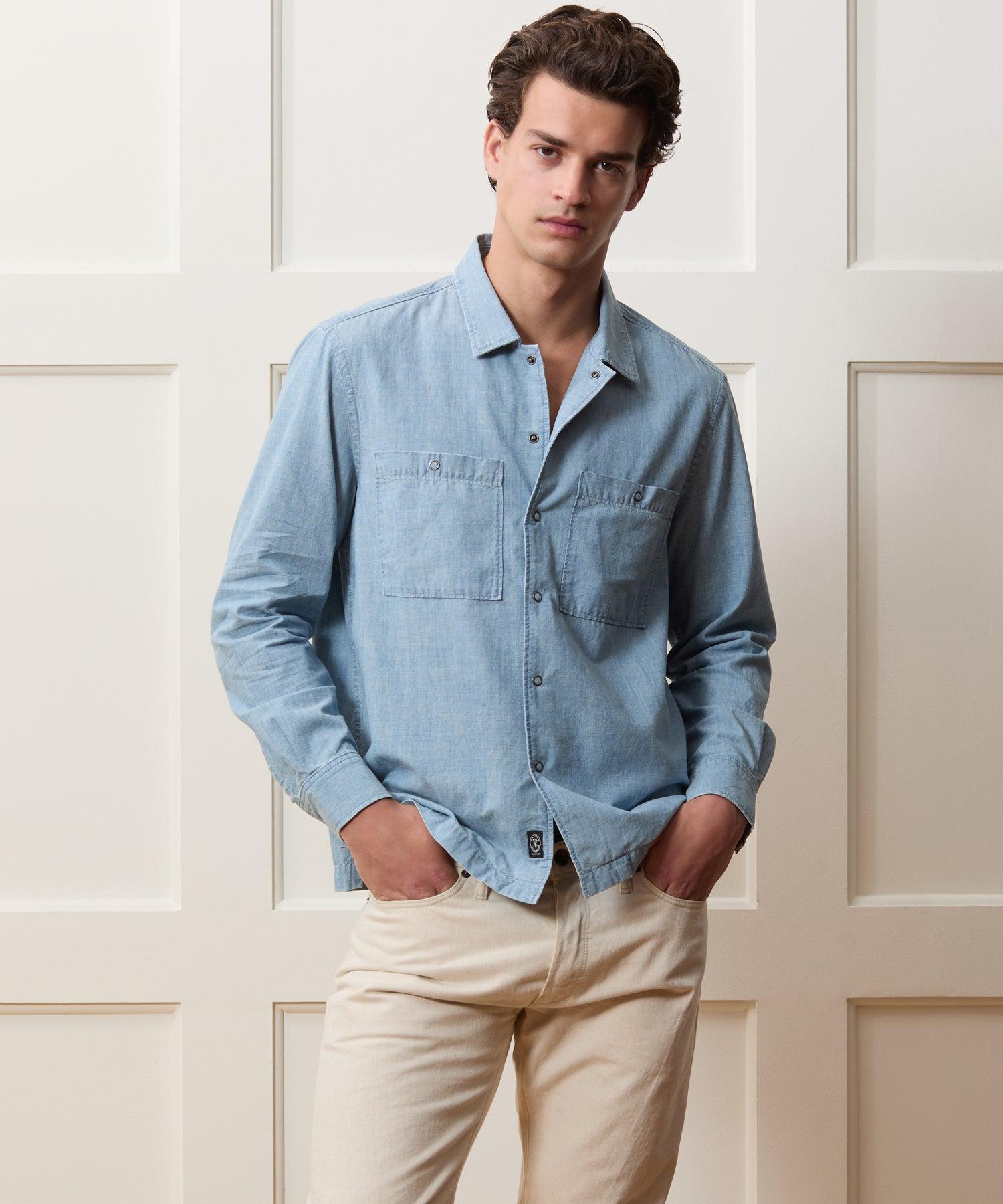 This rugged-meets-refined Mechanic Shirt is crafted from a lightweight chambray with a broken-in vintage wash. True cotton chambray, which this is, doesn’t refer to the pale blue color that people often associate it with. While it often ends up resembling denim, chambray is woven differently, combining a dyed warp yarn with a white filling yarn for a softer, lighter finish. Design details include two chest pockets, a straight hem and ring snaps. 100% Cotton Slim Fit Model is 6'2" and is wearing a size Medium Ring Snaps at Placket, Pockets and Cuffs Locker Loop at Back Chest Pockets Straight Hem Imported Machine Wash Once Before Wearing, Machine Wash Cold Separately, Only Non Chlorine Bleach When Needed, Tumble Dry Low, Warm Iron As Needed Style SH27110391