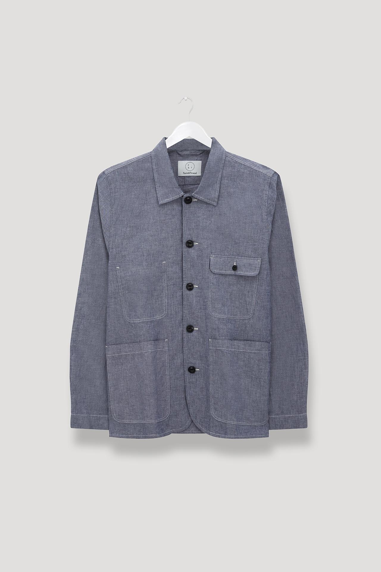 The Scribbler Overshirt is cut from lightweight cotton chambray that feels like a shirt but acts like a jacket. Cut for a regular fit and detailed with three large pockets and curved hem. Finished with corozo fish-eye buttons. The perfect high-summer, lightweight jacket.