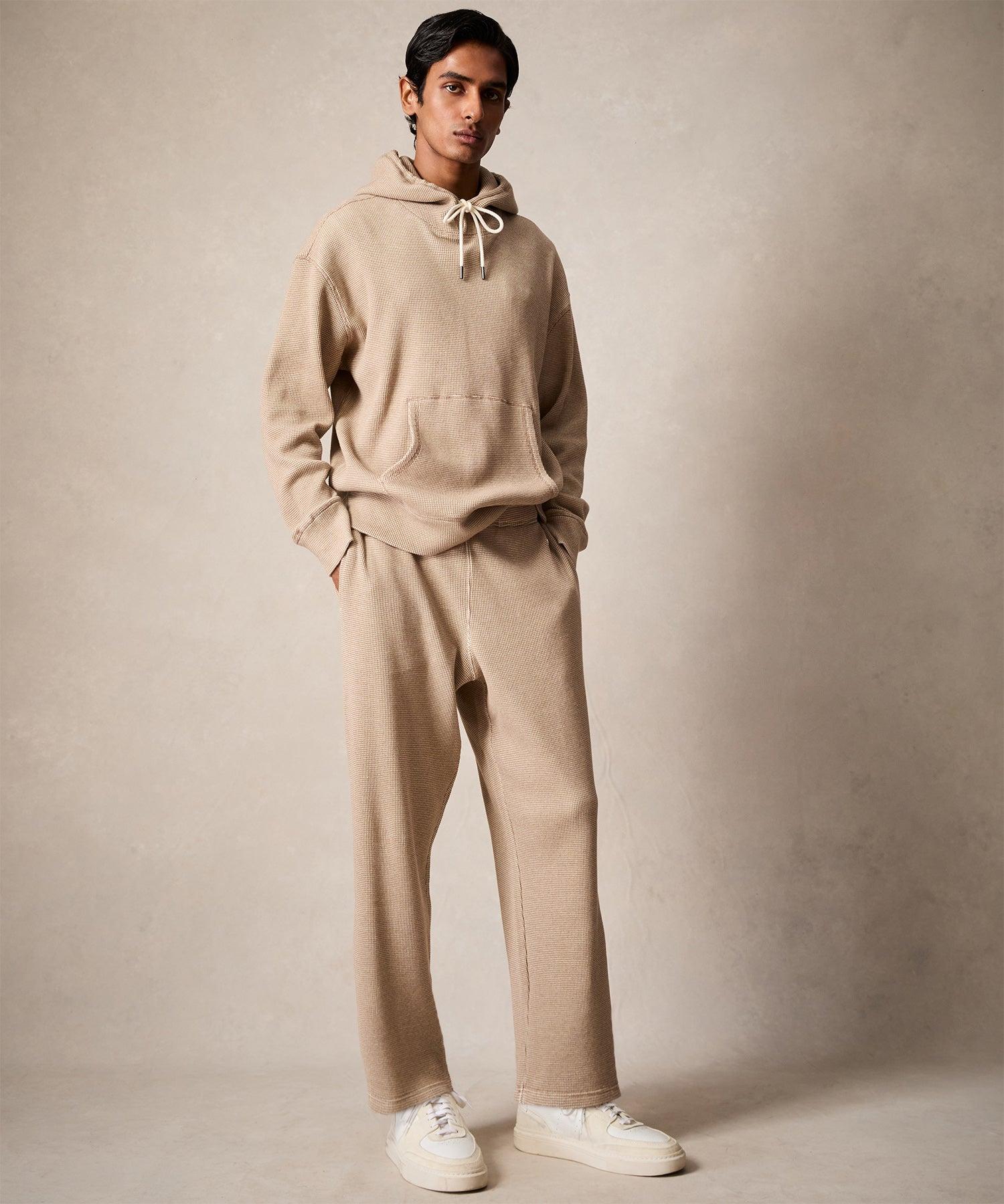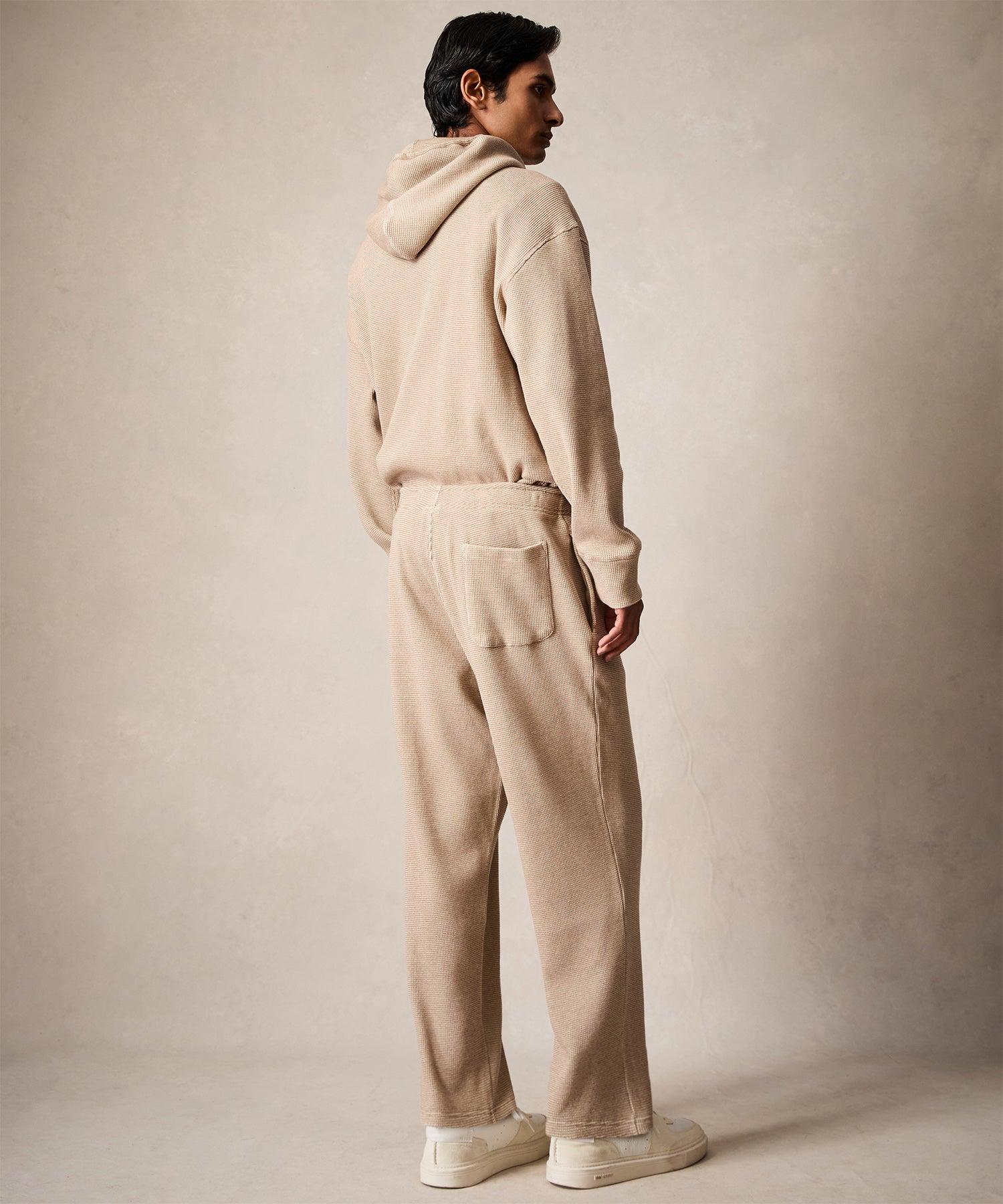 For Todd’s latest collab with Champion (the experts in comfort), he’s given a few of their most classic silhouettes a chic upgrade. Enter these Waffle Sweatpants, crafted from a soft and dense plaited thermal cotton fabric made in Portugal. The relaxed silhouette is inspired by some of our favorite styles from the 80s and 90s, with ample room through the leg and a little extra length for an intentionally “puddled” look at the ankle. PS: we have a matching Crewneck, too. Matching Crewneck & Hoodie Available 100% Cotton Relaxed Fit Plaited Waffle Thermal Two-Tone Fabric Elastic Waistband with Interior Drawstring Elastic Cuff at Ankle Made in Portugal Dry clean or machine wash cold, delicate. Do not bleach, do not tumble dry. Cool iron if needed. Style KN300085