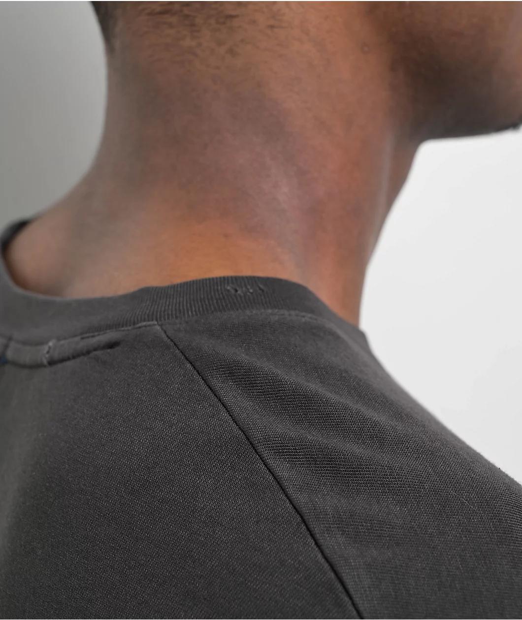 Made from lightweight 100% cotton fabric in a washed black tone, Champion welcomes the Riggins t-shirt in a loose-fitting drop shoulder silhouette for a drapey, carefree look. The short sleeve employs embroidered brand patches on the left sleeve and