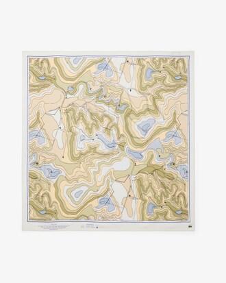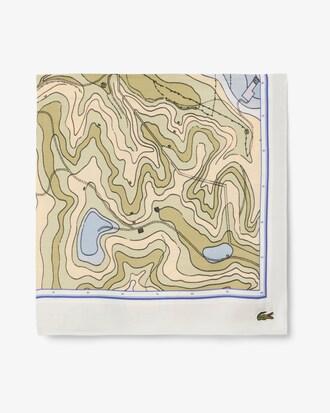 This scarf is made from a plain woven fabric, printed with a map of Chantaco. An elegant but relaxed style, finished with a green embroidered crocodile.