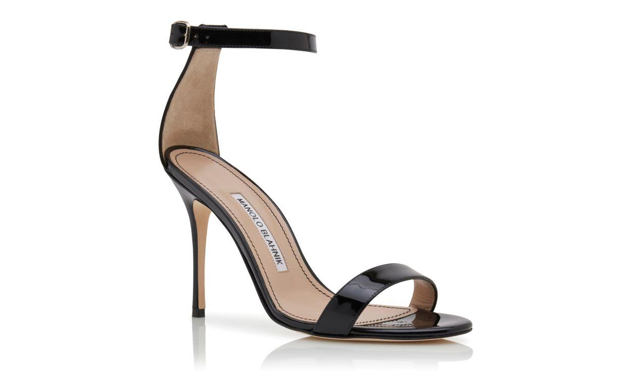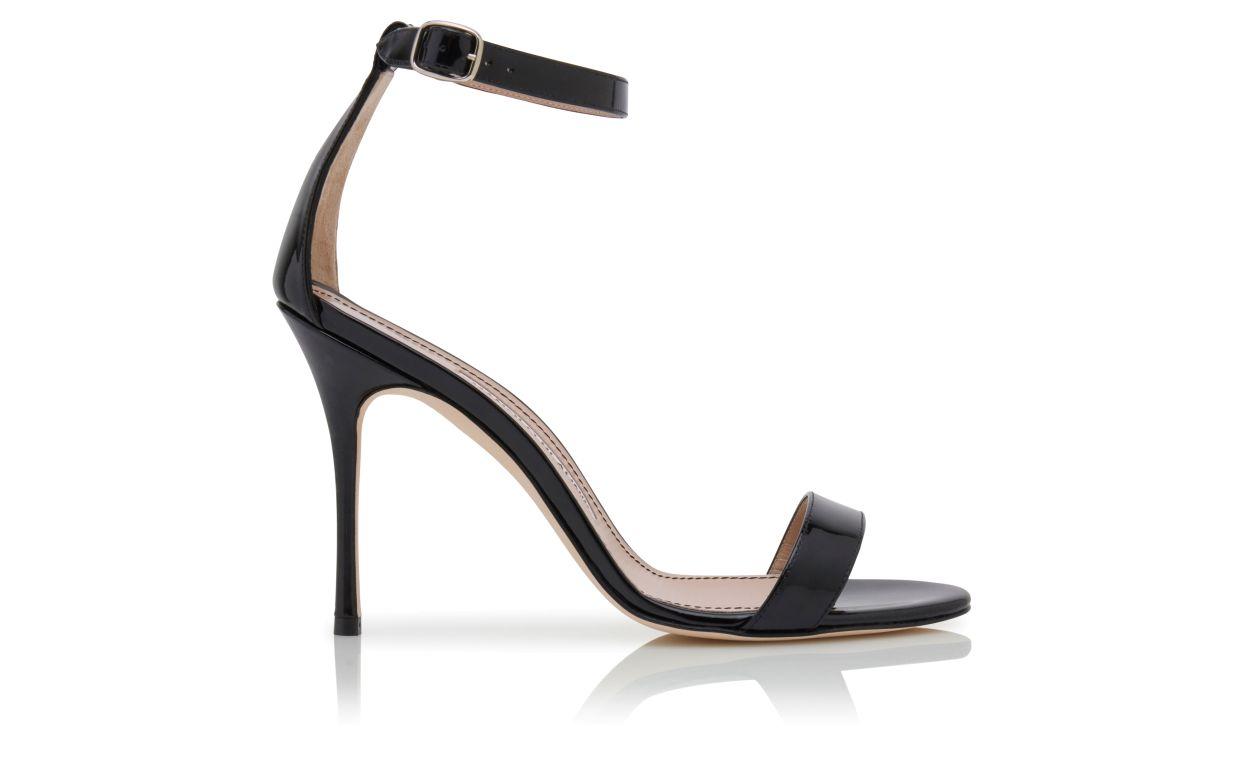 CHAOS Black Patent Leather Ankle Strap Sandals