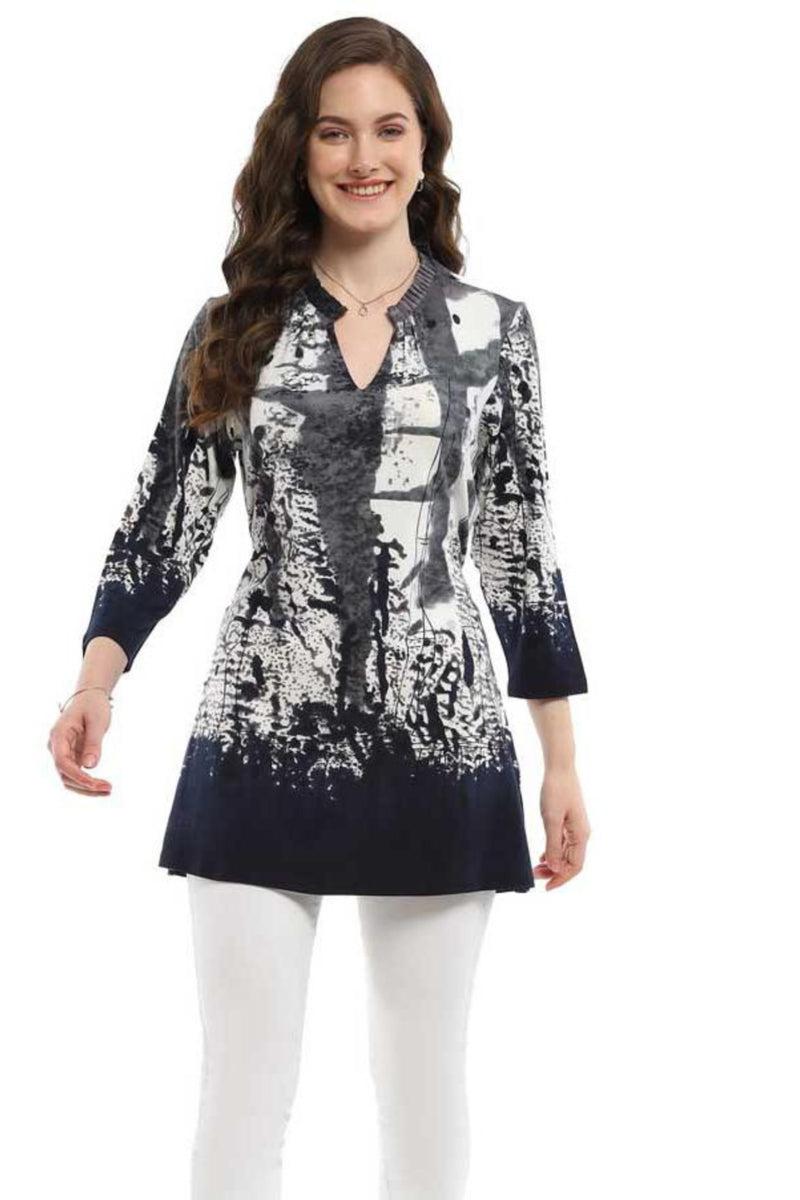 Parsley & Sage - You’ll love the fabric’s comfortable, satisfying drape. Versatile tops you can dress up with accessories or wear casually. Tunic-length shirts that look great over skinny jeans & leggings. This top features a slit neck with a pleated stand-up collar, 3/4 sleeves, a simple A-line cut with a belt and a curved hem.
