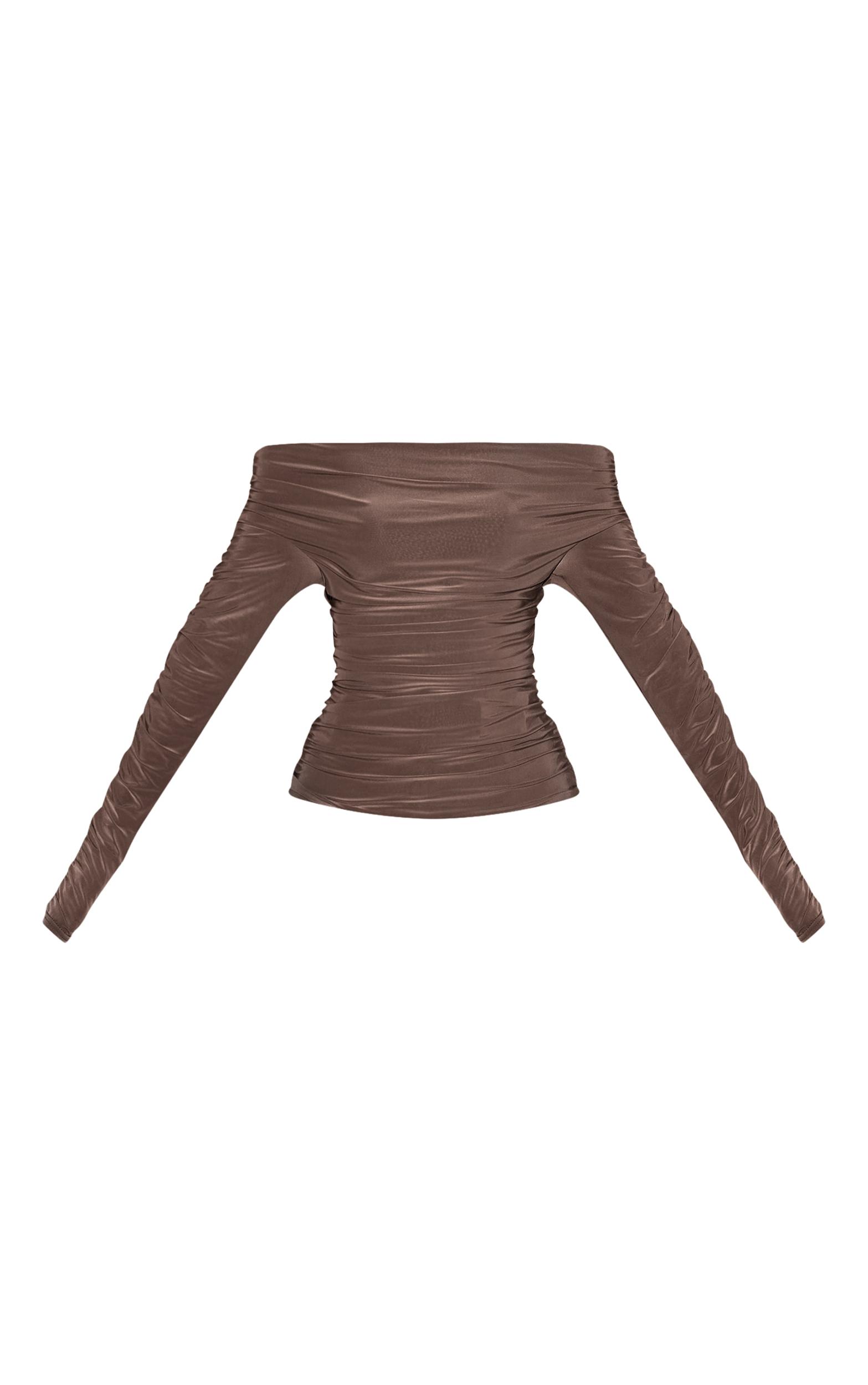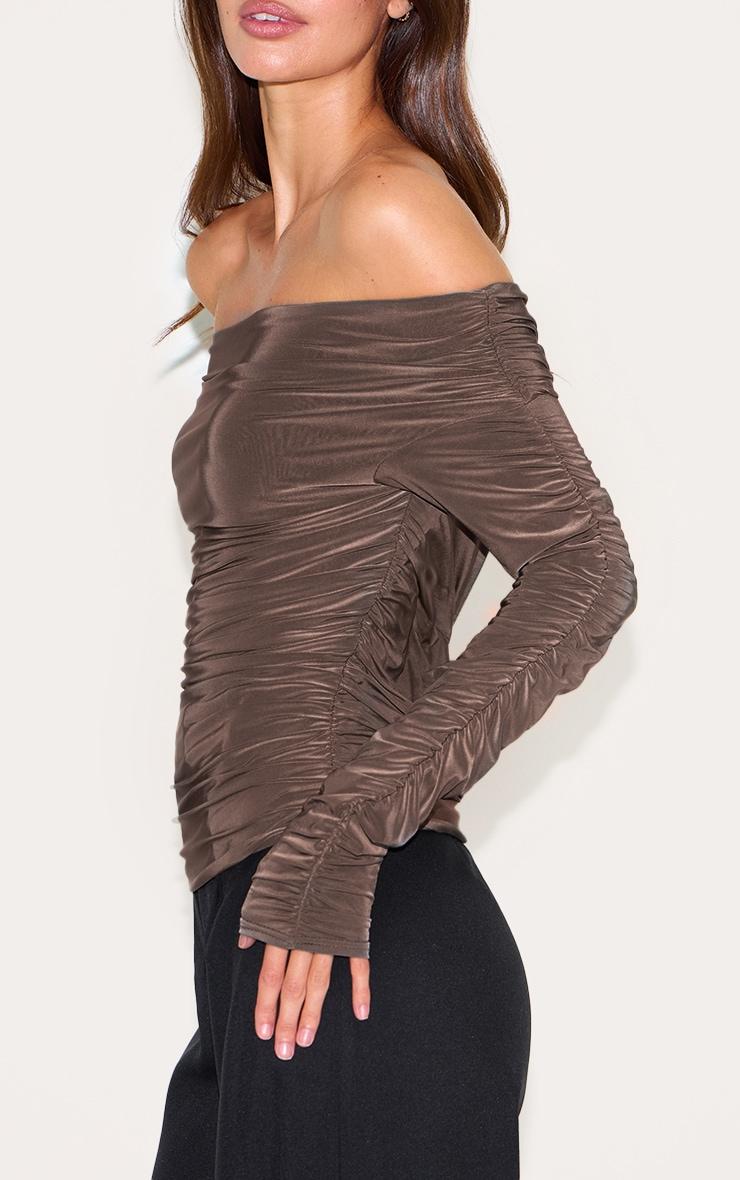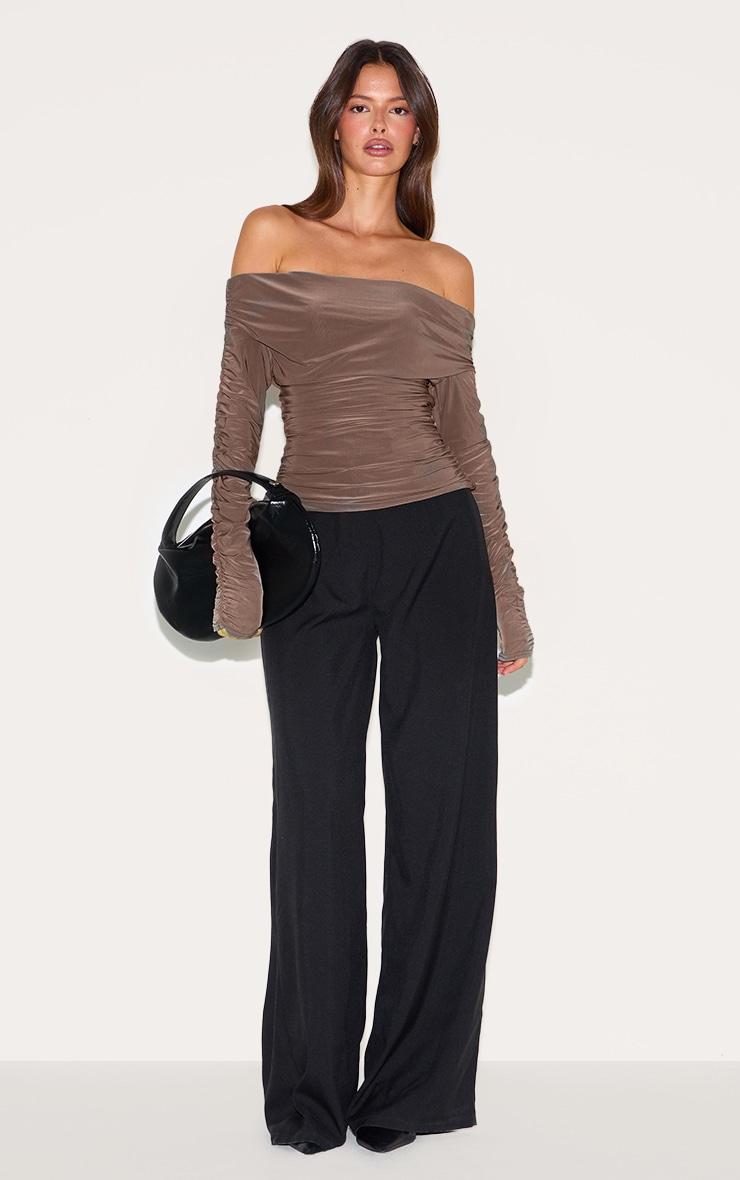 Carefully crafted from charcoal double layer slinky material with chic bardot neckline detailing, long sleeves and a flattering hip length fit. For an elevated look, pair this charcoal double layer slinky detail bardot long sleeve top with your go-to tailored black pants, a structured shoulder bag and pointed toe heels.Length approx 48.5cm/19inch (Based on sample size US 4)Model wears size UK 8/ EU 36/ AUS 8/ US 4Model Height - 5ft 7inchp]:!mb-4inch>Brand: PrettyLittleThingCategory: TopsProduct type: Bardot TopColor: CharcoalMaterial: Slinky JerseyDesign: PlainNeckline: BardotSleeves: LongOccasion: Evening