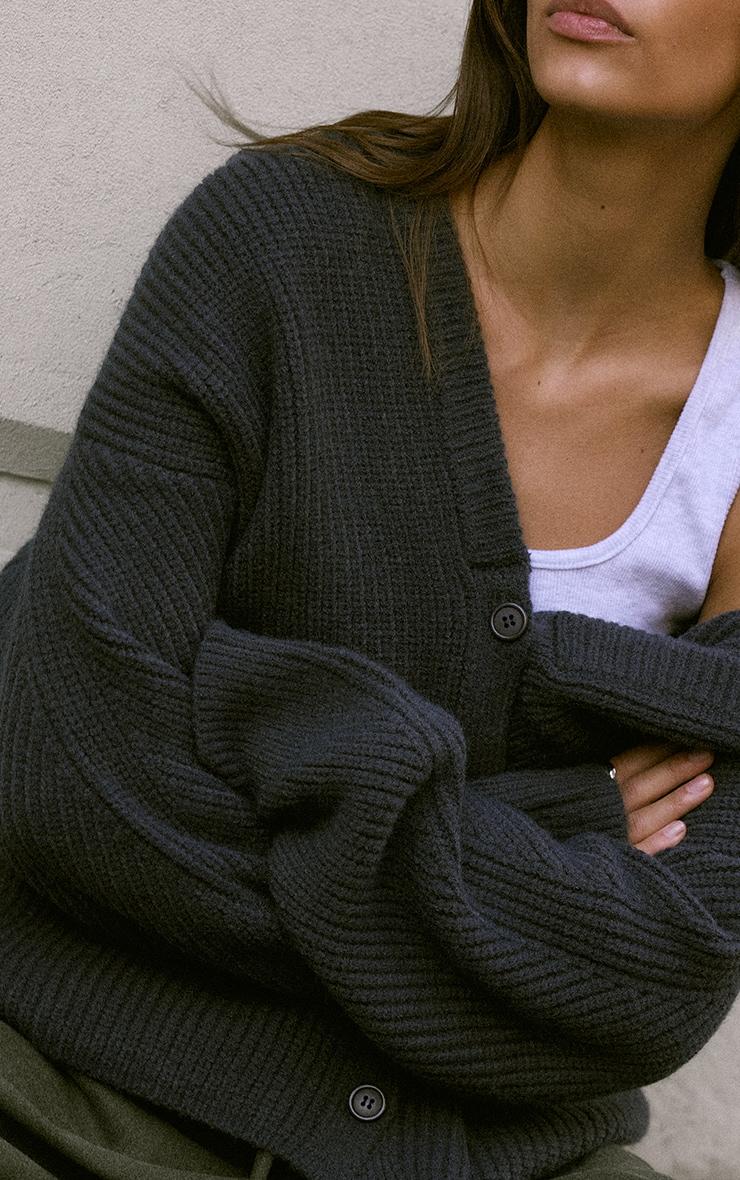 Stay cosy in style with this charcoal grey thick knit oversized button through cardigan. Made from a charcoal grey thick knit material with an oversized fit and button-through front, it’s perfect for layering. Style over a basic outfit with sneakers for a relaxed finish. Length approx 48.5cm/19inch (Based on sample size S)Model wears size SModel Height - 5ft 8inchp]:!mb-4inch>Category: KnitwearProduct type: CardigansColor: GreyMaterial: KnitOccasion: Day