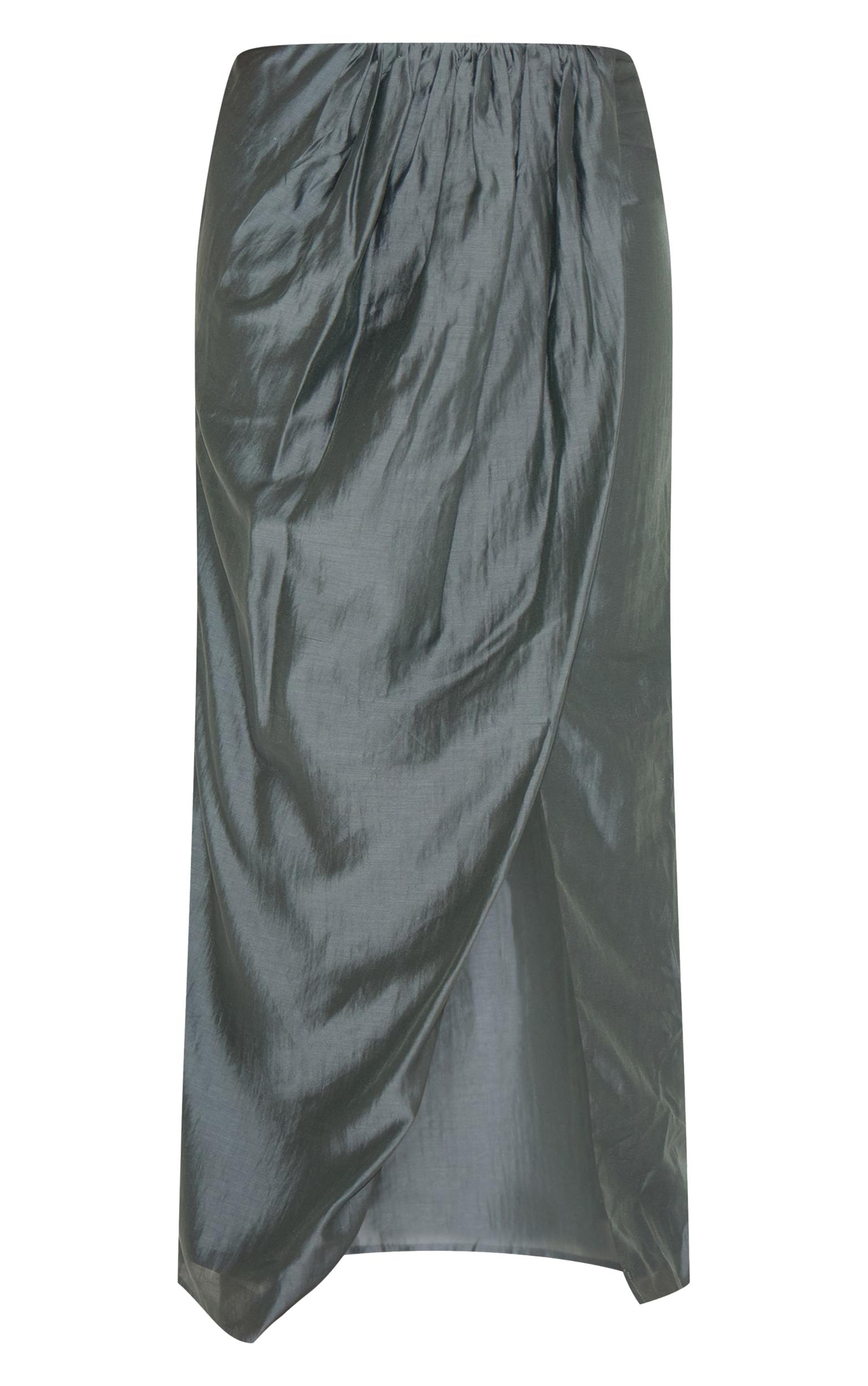 Define your evening aesthetic with an understated edge. The charcoal satin wrap detail maxi skirt is designed to make a confident statement, featuring an artful wrap that cascades into a striking high split for effortless movement. Its comfortable elasticated waist ensures a sleek, draped silhouette that moves with you. Team this essential piece with a sharp bandeau top and pointed stiletto heels, completing the look with a minimalist clutch for an undeniable evening presence.Length approx 108cm/42.5inch (Based on sample size US 4)Model wears size UK 8/ EU 36/ AUS 8/ US 4Model Height - 5ft 7inchp]:!mb-4inch>Brand: PrettyLittleThingCategory: BottomsProduct type: Maxi SkirtColor: CharcoalMaterial: SatinDesign: PlainOccasion: Evening