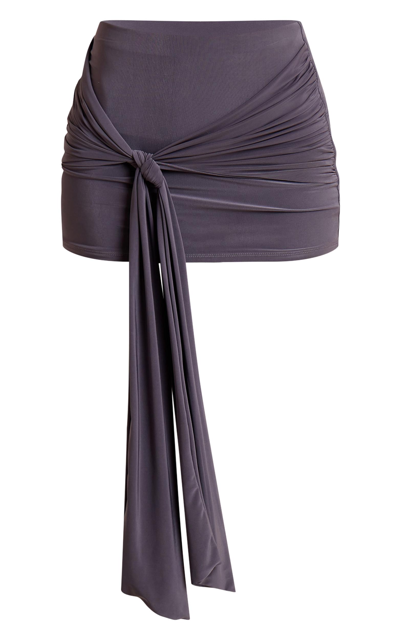Add sleek drama with the charcoal slinky knot detail mini skirt. Featuring a body-hugging slinky fabric and chic knot detail, it’s cut to flatter every curve. Team with a cropped top and strappy heels for a night-out look.Length approx 33cm/13inch (Based on sample size US 4)Model wears size UK 8/ EU 36/ AUS 8/ US 4Model Height - 5ft 6inchp]:!mb-4inch>Brand: PrettyLittleThingCategory: BottomsProduct type: Mini SkirtColor: CharcoalMaterial: Slinky JerseyOccasion: Evening