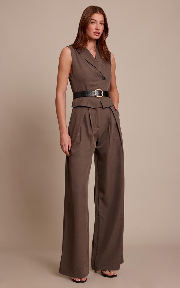 Command effortless attention this evening in the charcoal tailored woven straight leg jumpsuit, a masterclass in sophisticated dressing. This artfully designed piece features a confident sleeveless cut, with a sharp V-neckline framed by elegant lapels that define the tailored bodice. The wide, straight-leg pants flow from subtle front pleats, ensuring an elongated and impactful presence that moves with knowing ease. Elevate this definitive evening look with sleek knee high boots, adding a delicate gold ring for a truly polished finish that speaks volumes.Length approx 155cm/61inch (Based on sample size US 4)Model wears size UK 8/ EU 36/ AUS 8/ US 4Model Height - 5ft 9inchp]:!mb-4inch>Brand: PrettyLittleThingCategory: DressesProduct type: Wide Leg JumpsuitColor: CharcoalMaterial: Tailored WovenOccasion: Evening
