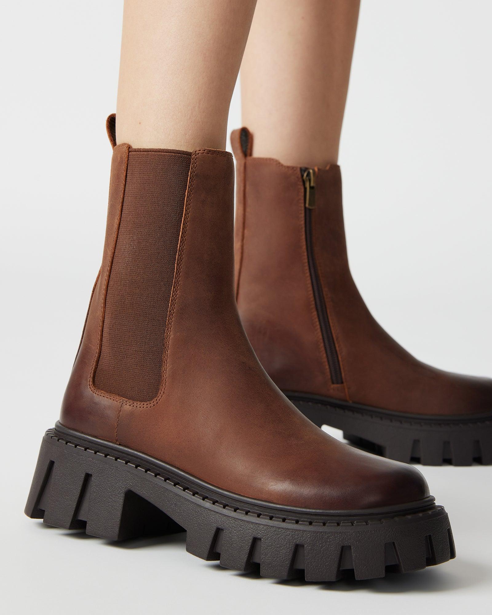 TOUGH + DYNAMIC + POWERFUL The elastic gore on the CHARGES leather Chelsea bootie ensures all-day comfortable wear, while the chunky lug sole keeps you secure on your feet. Lug sole Chelsea boot Zipper closure at the side Stretch gore 2.25 inch heel height 1 inch platform 9.75 inch shaft circumference 7.25 inch shaft height Leather and textile upper material Textile and synthetic lining Synthetic sock Synthetic sole This product is made with premium leather and is individually hand finished. As a result, the product can vary slightly from the pictures. Imported